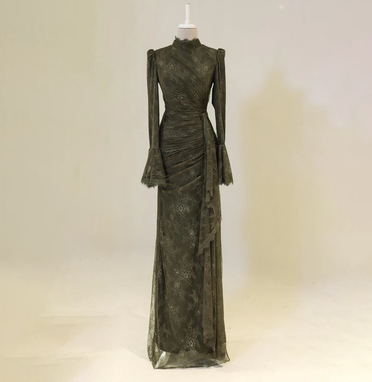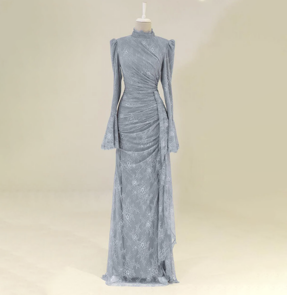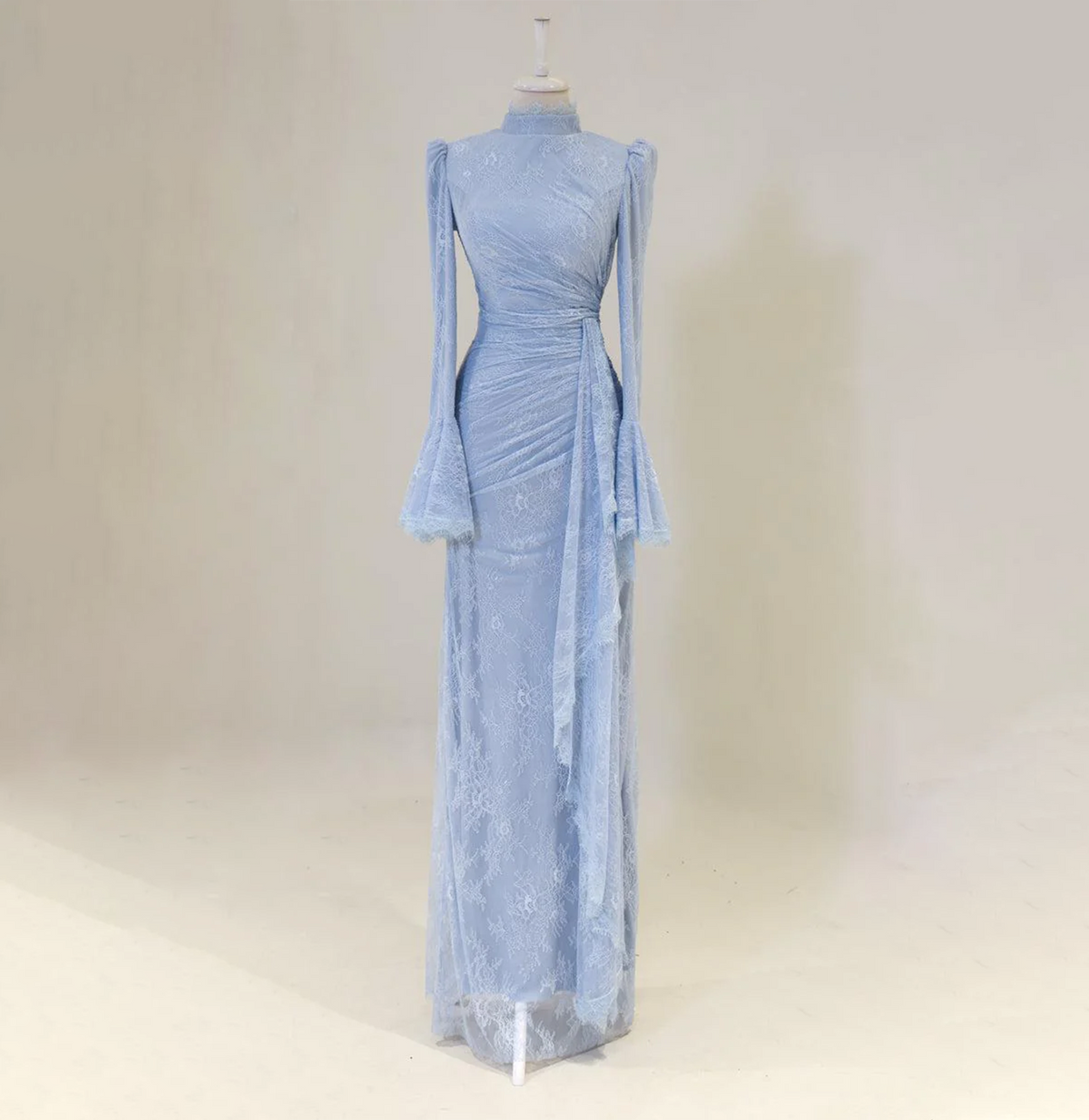 Elegant High Neck Long Sleeves Lace Evening Dress SF484