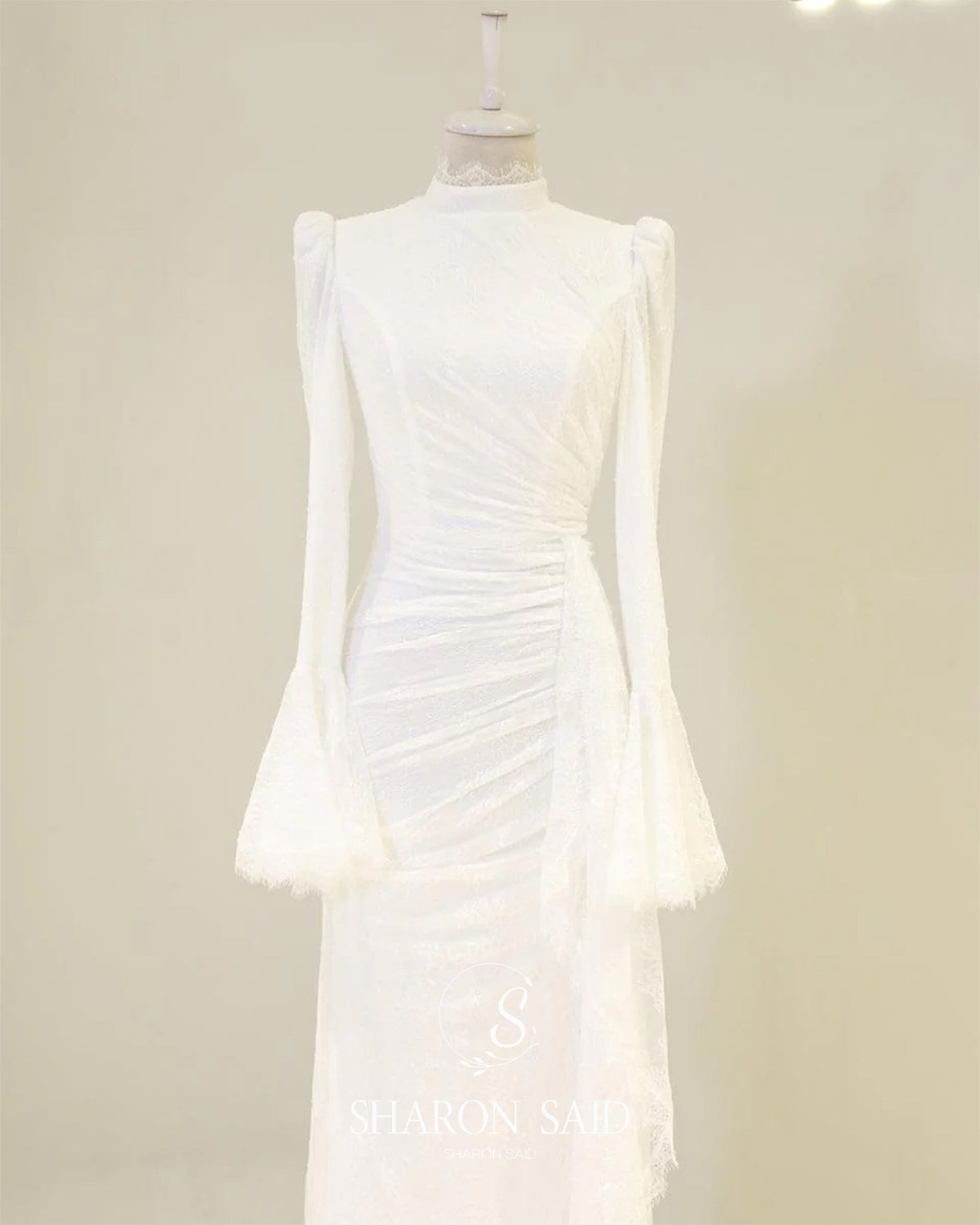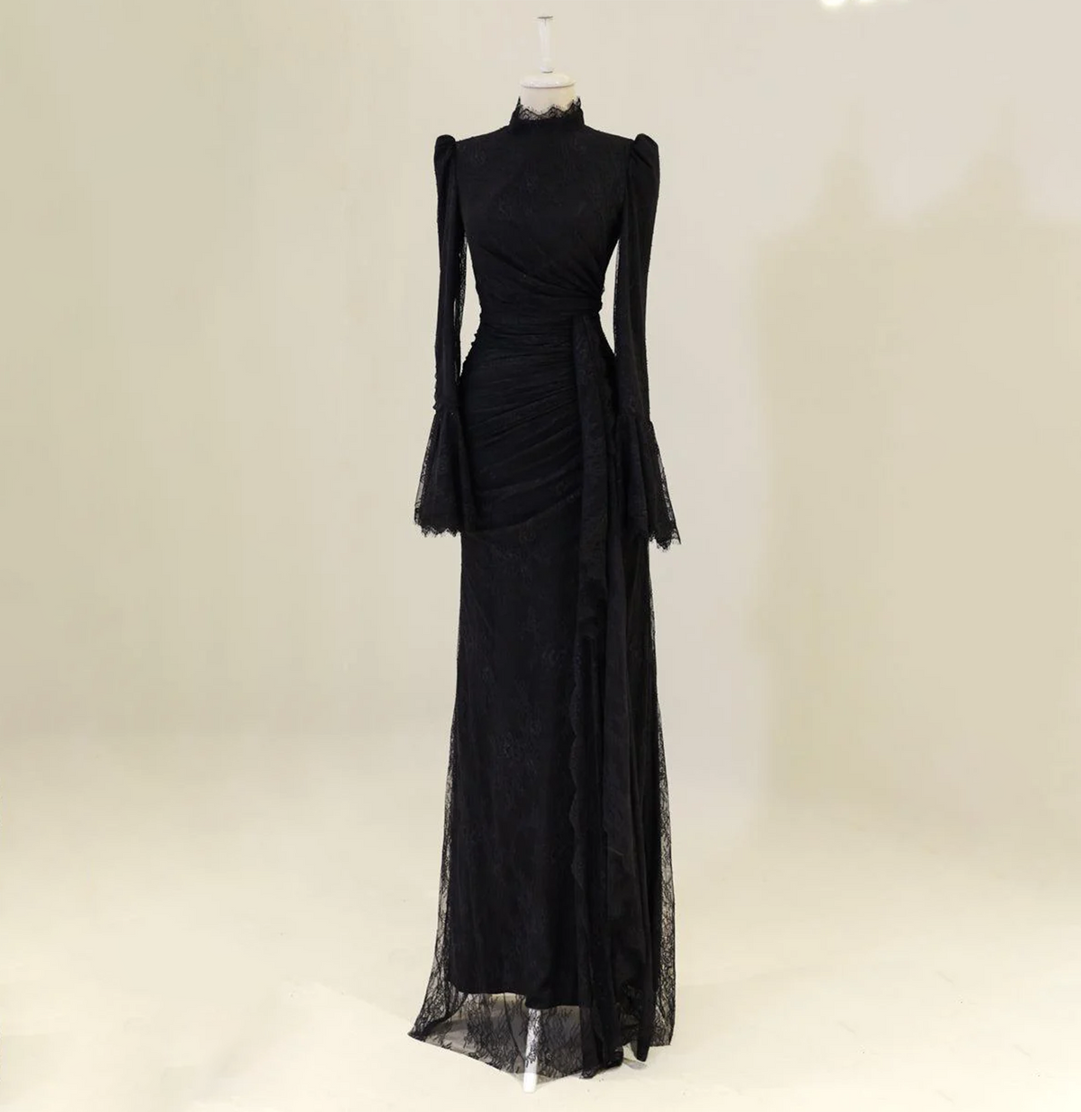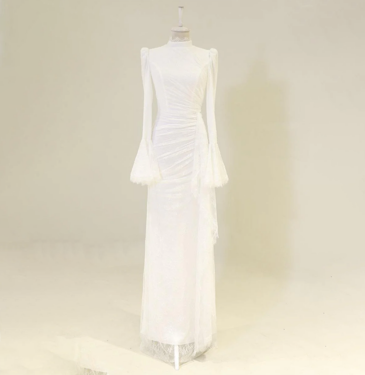 Elegant High Neck Long Sleeves Lace Evening Dress SF484