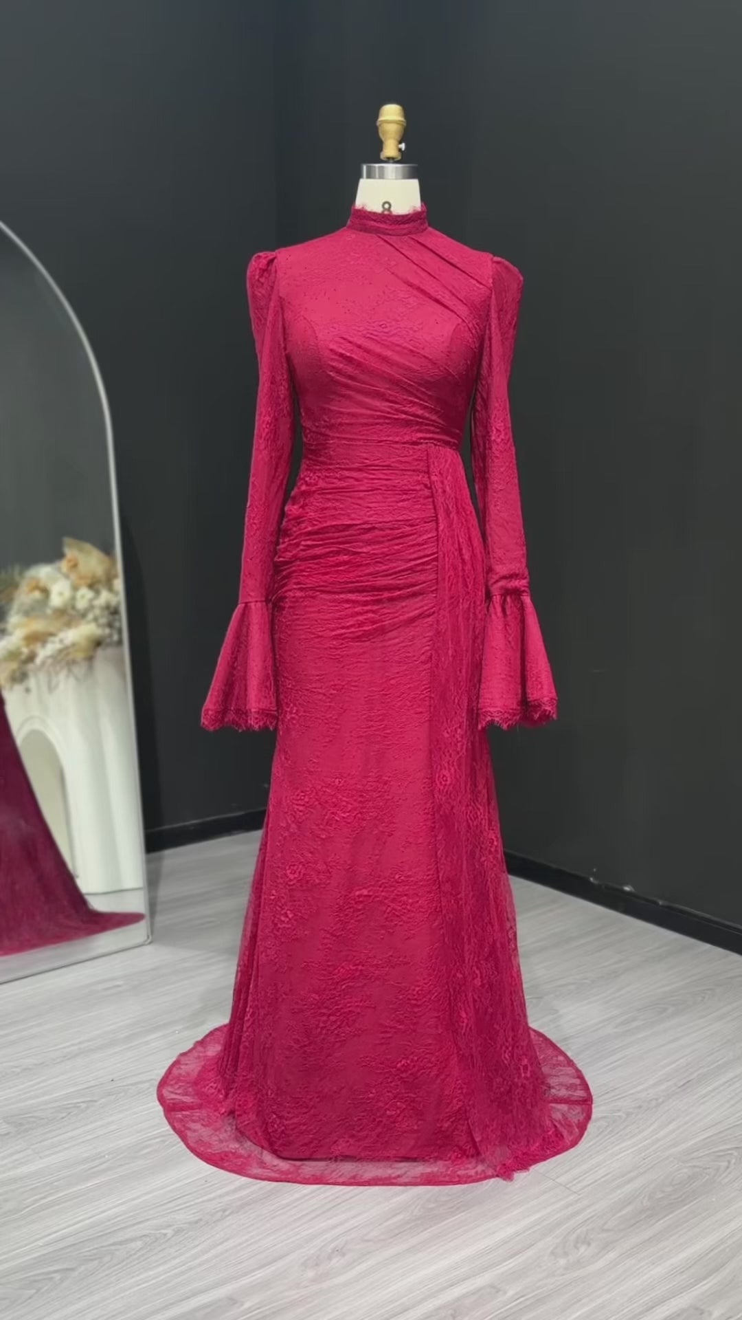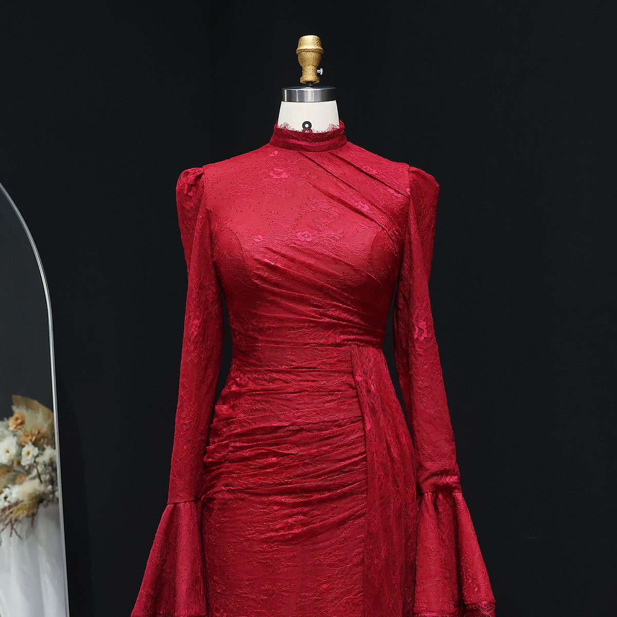Embrace timeless elegance in our Elegant Burgundy High Neck Long Sleeves Lace Evening Dress SF484. This stunning dress features intricate lace details and a high neck design for a sophisticated look. With its long sleeves, it is perfect for cooler evenings. Make a statement at your next event with this chic and stylish dress.