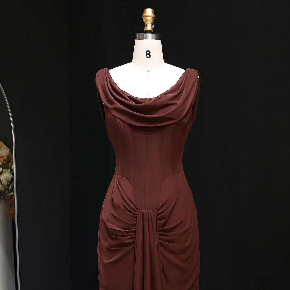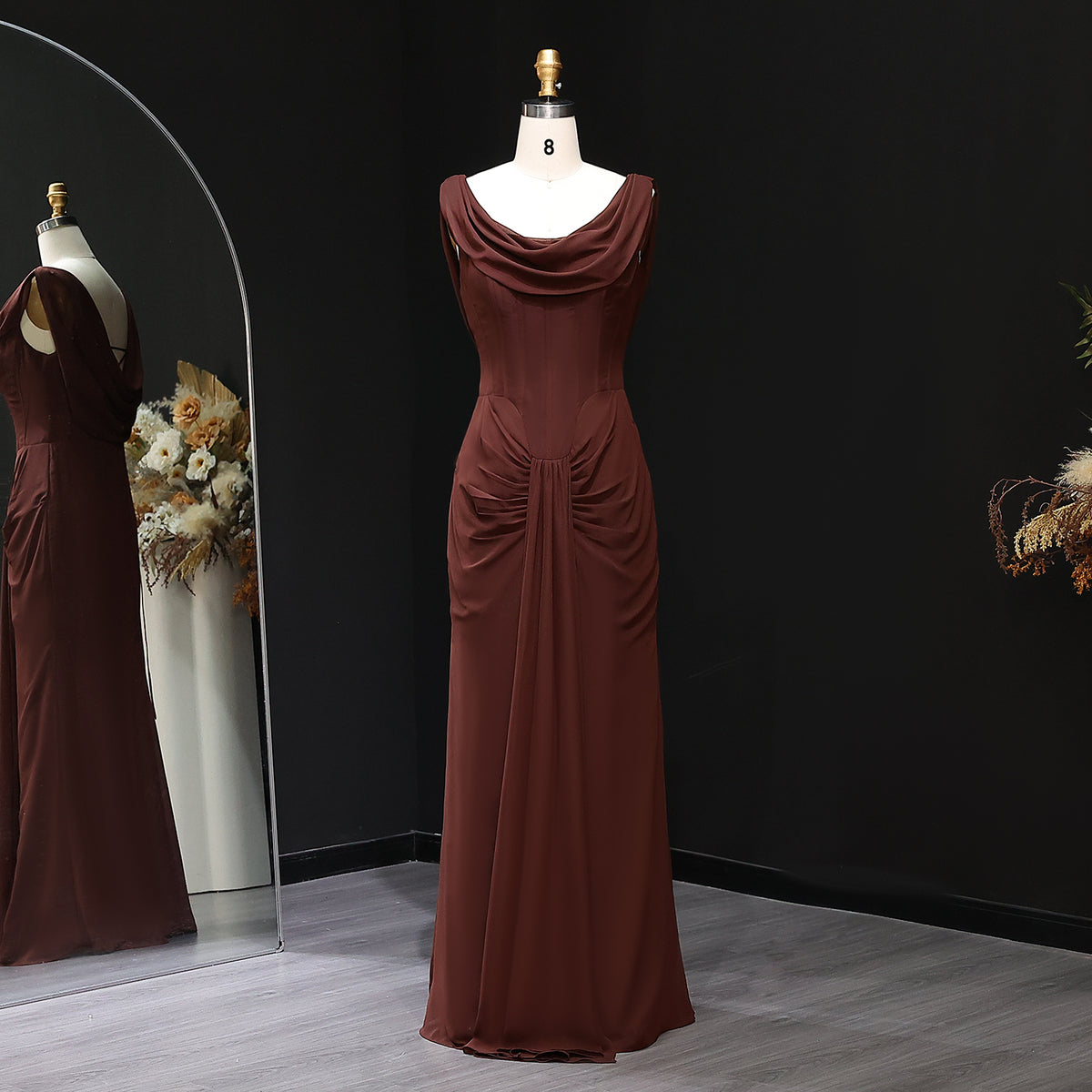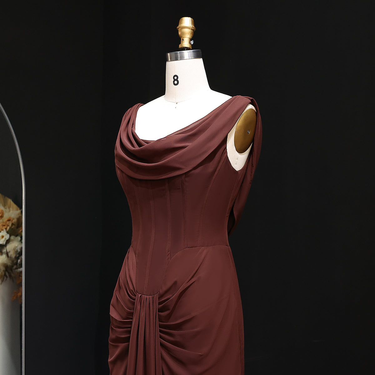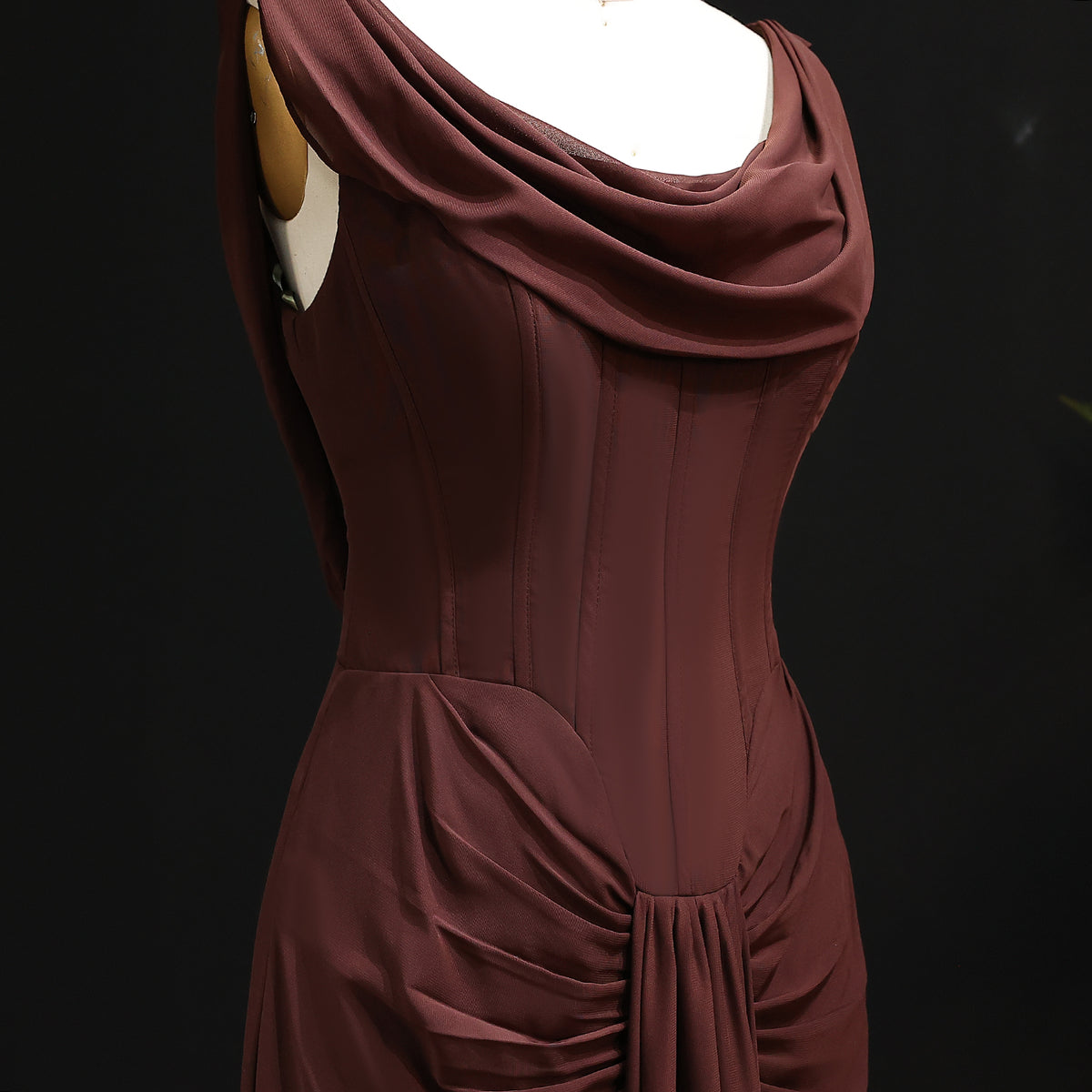 Elegant Cabernet Bataeu Draped Evening Dress SF496