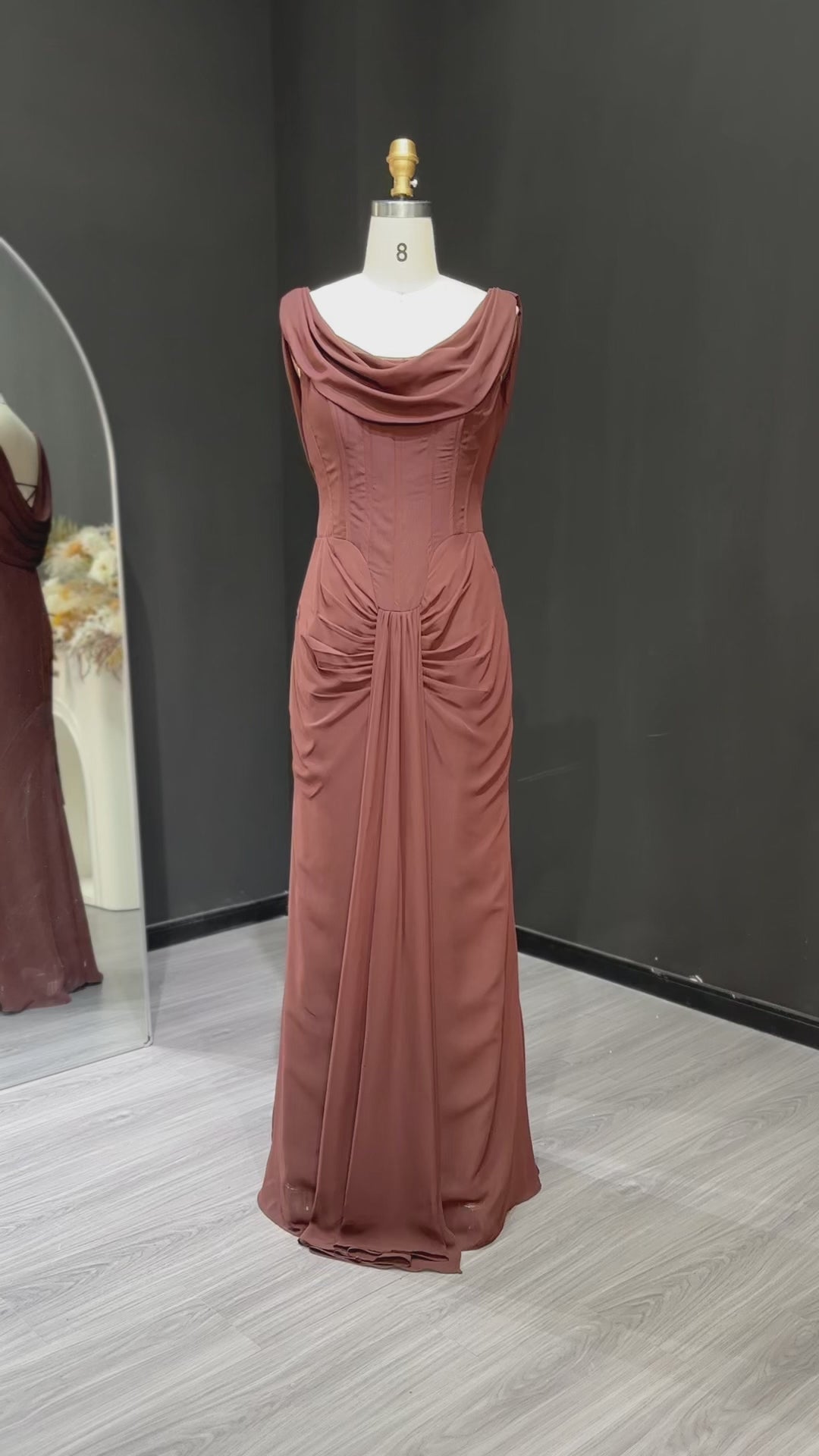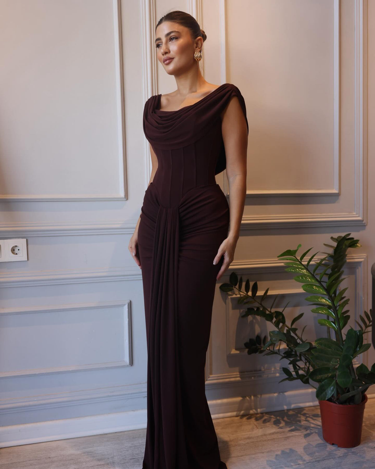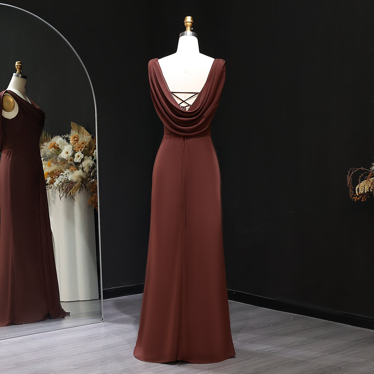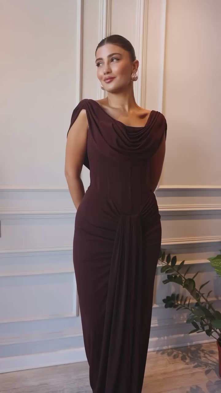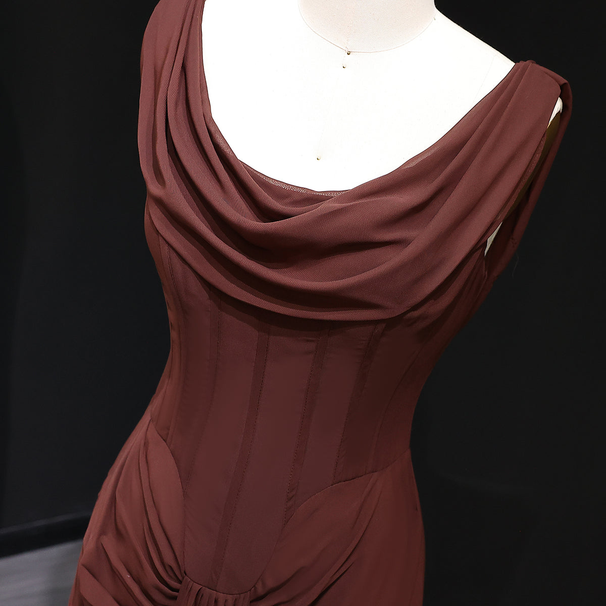 Elegant Cabernet Bataeu Draped Evening Dress SF496