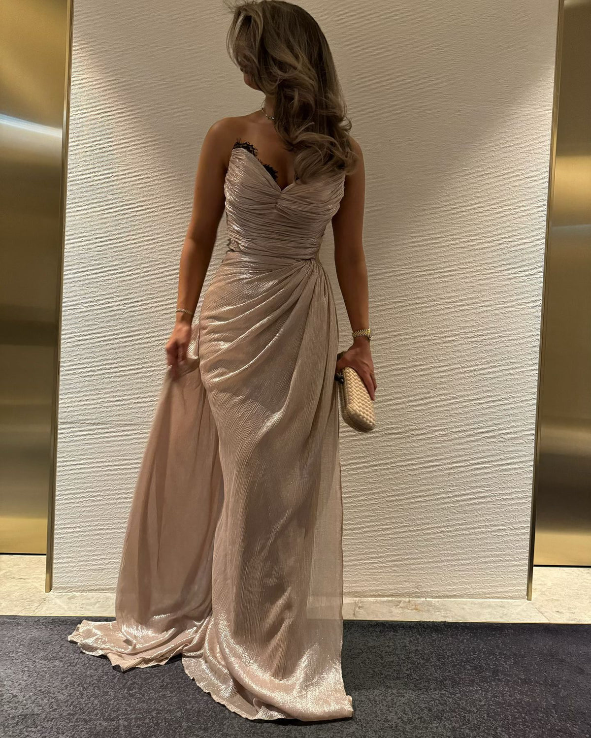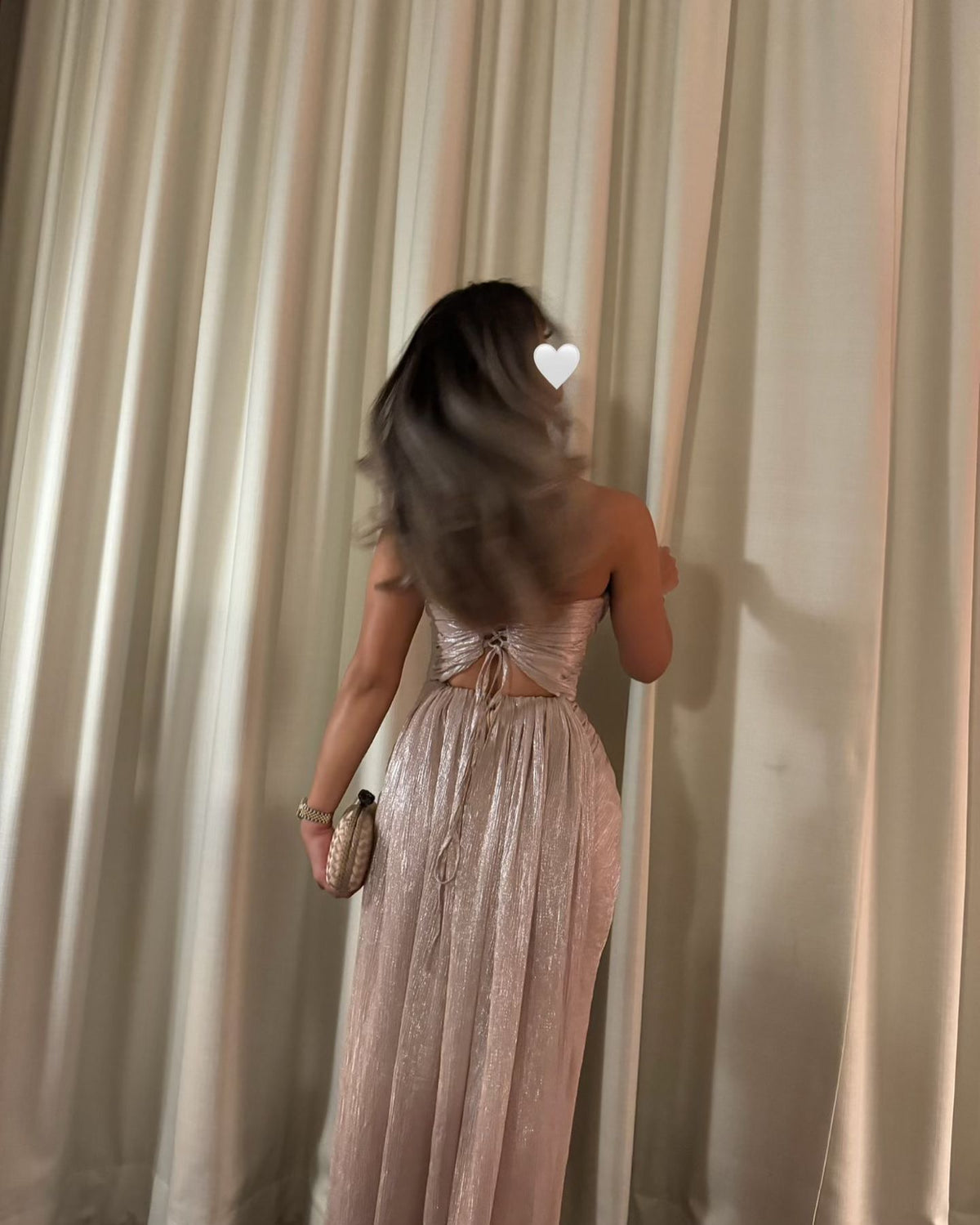 This Elegant Champagne Evening Dress with Overskirt SF069 exudes sophistication and glamour. Its flowing overskirt adds a touch of drama, making it ideal for special occasions. Made with high-quality materials, it combines elegance and comfort seamlessly. Perfect for those seeking a timeless and chic look.