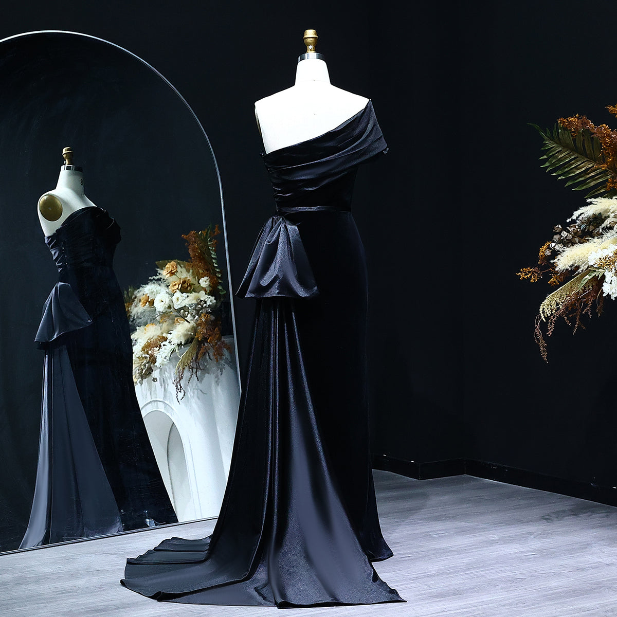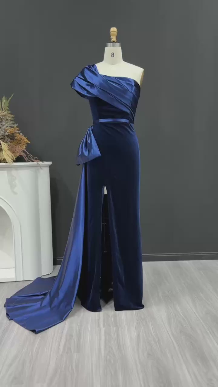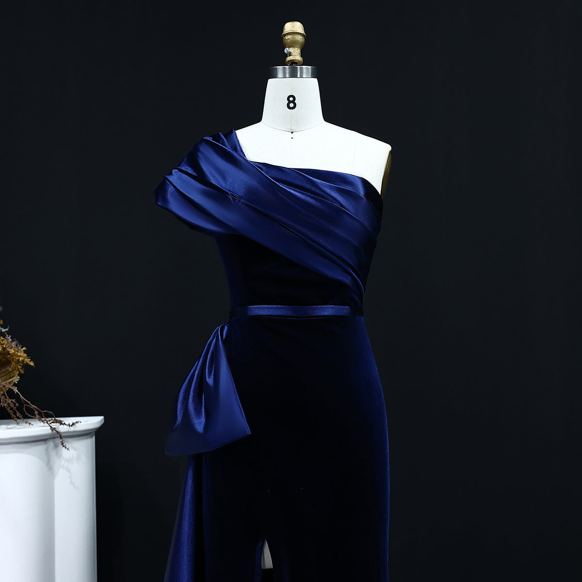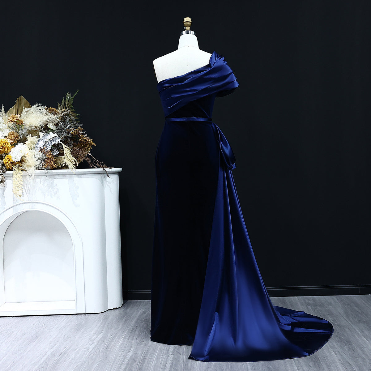 Elevate your evening look with our Elegant Dark Blue One Shoulder Evening Dress SF369. Feel confident and stylish in this one shoulder design, perfect for any formal occasion. The rich dark blue color exudes elegance while the sleek silhouette flatters your figure. Elevate your wardrobe with this stunning dress!