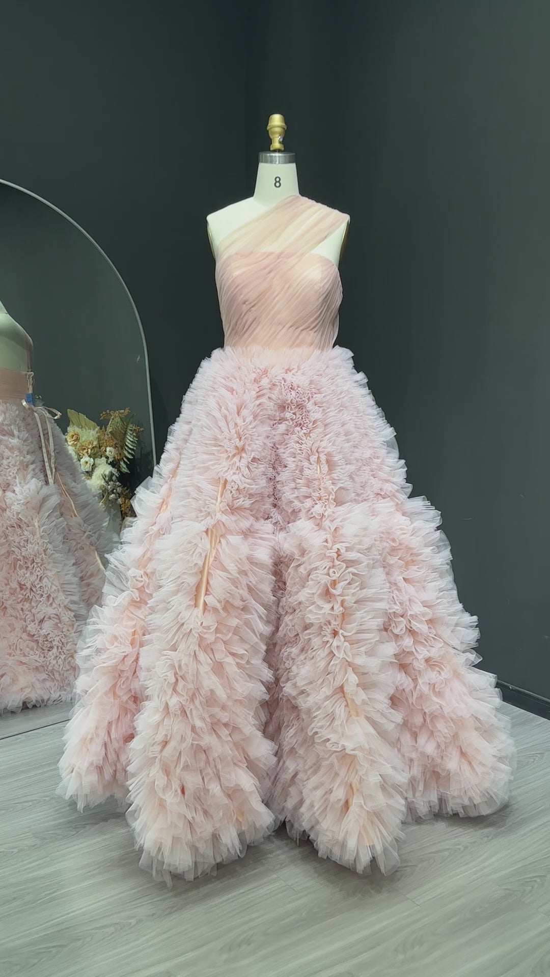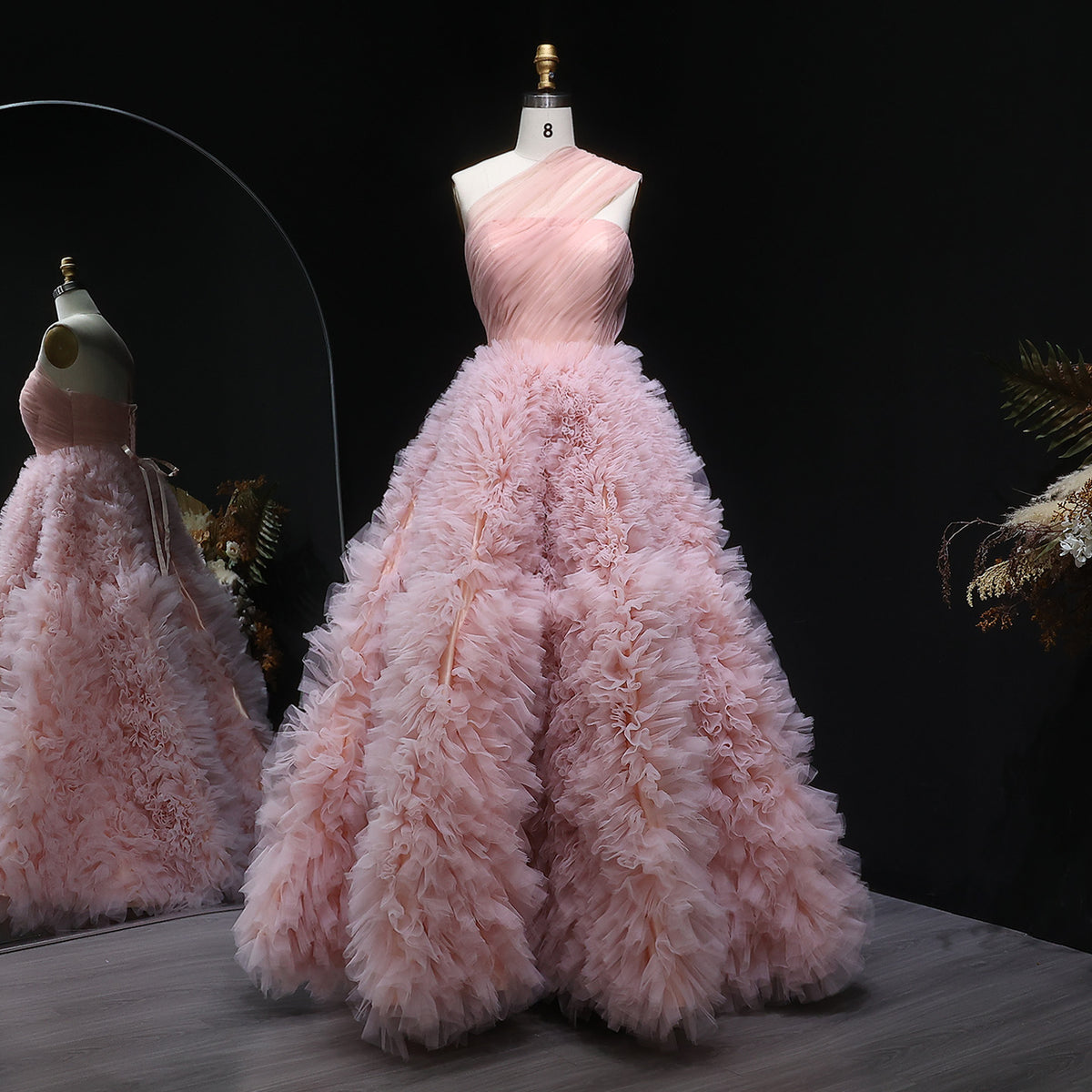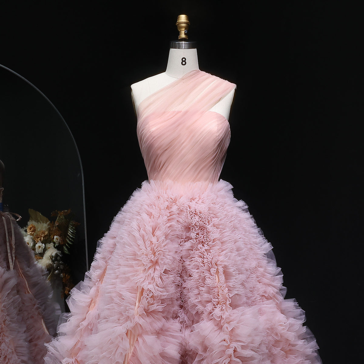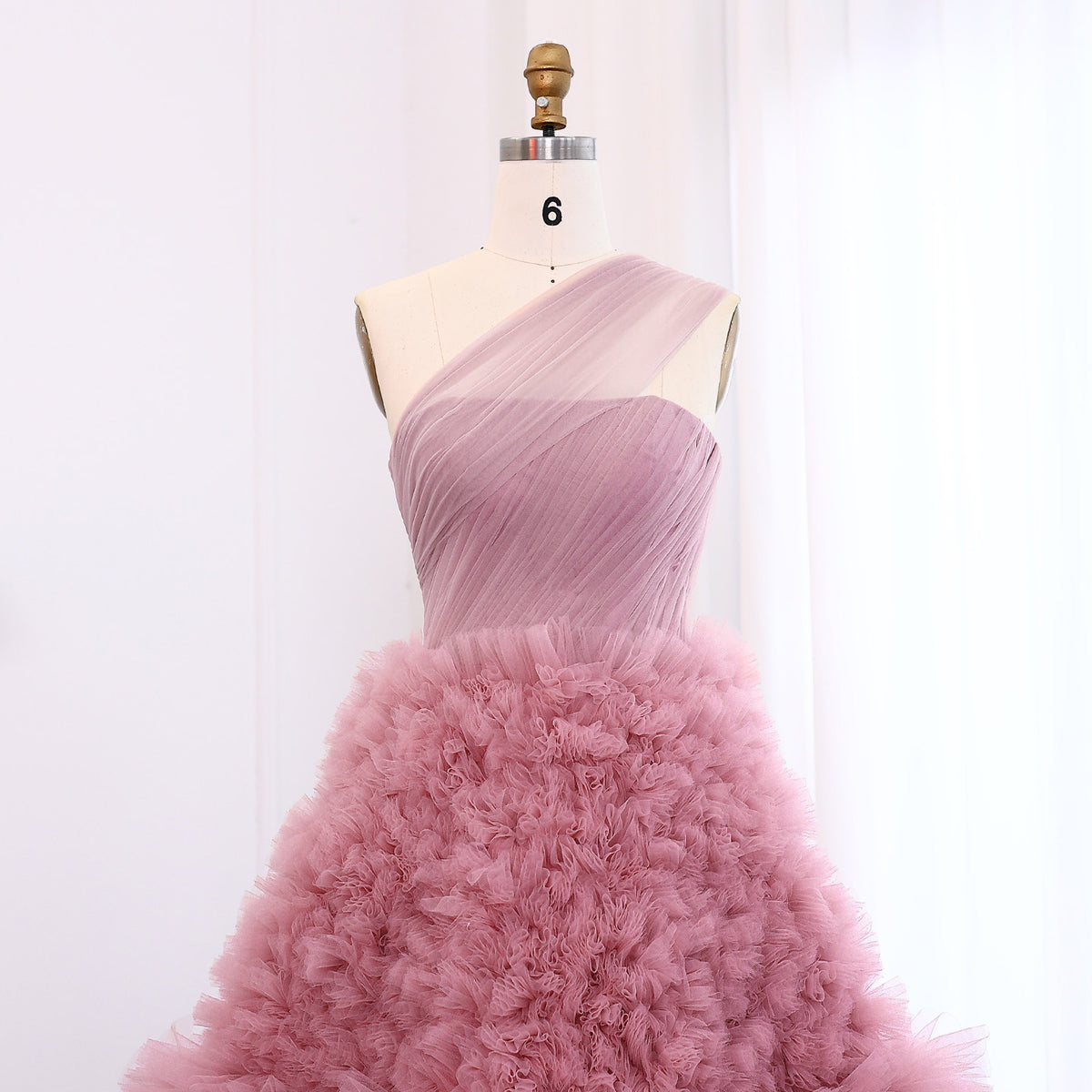 Elegant Dusty Pink One Shoulder A-Line Ruffles Evening Dress SF253