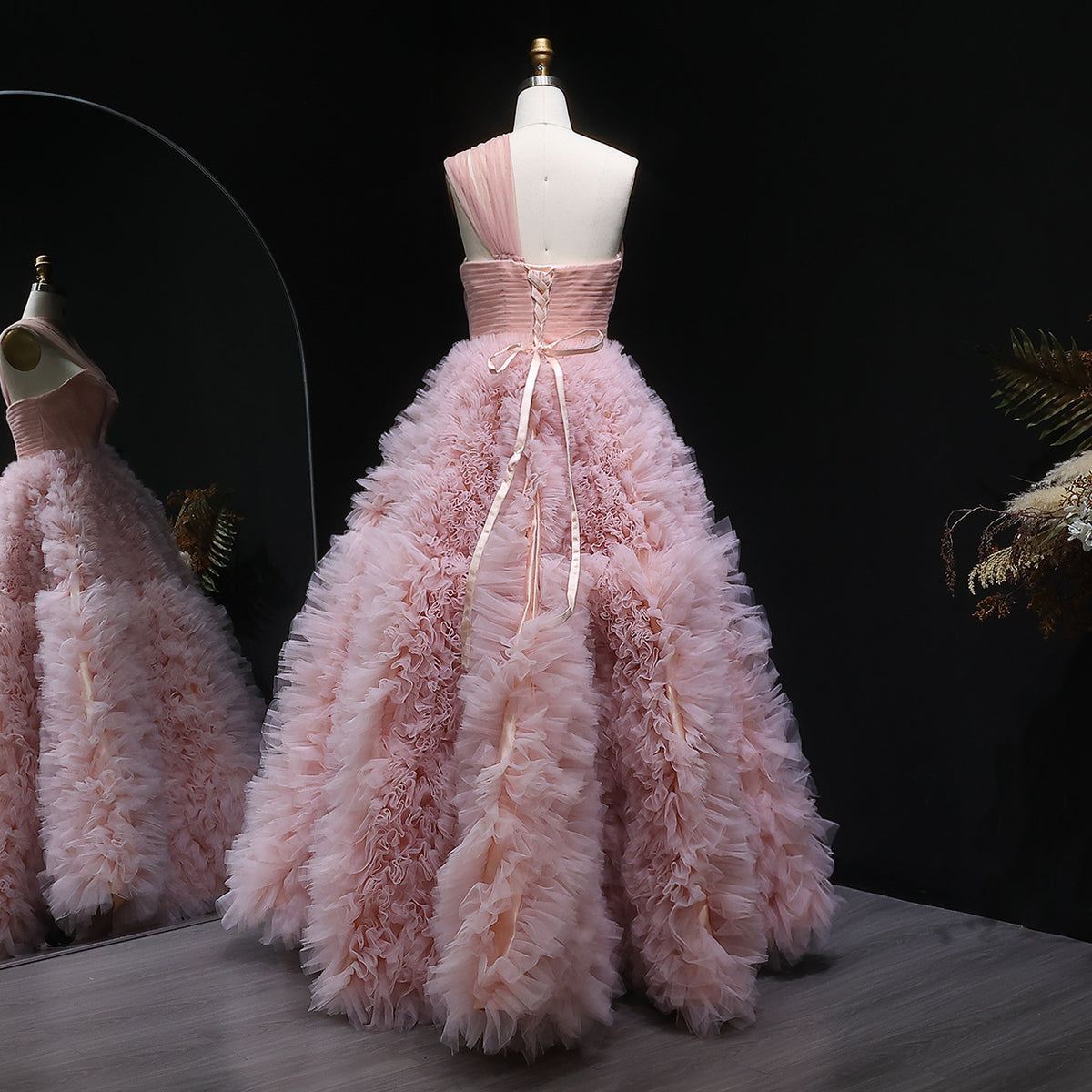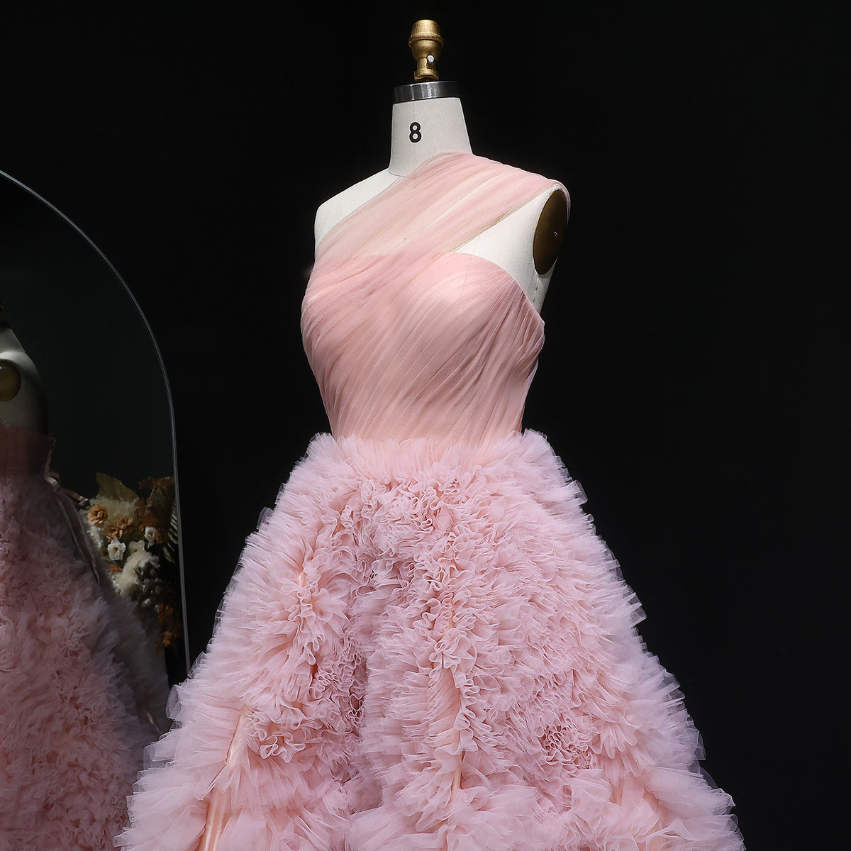Experience elegance at its finest with our Elegant Dusty Pink One Shoulder A-Line Ruffles Evening Dress SF253. This one-shoulder gown features a feminine A-line silhouette and cascading ruffles, making it perfect for any formal event. Crafted with quality fabrics and attention to detail, this dress will make you stand out with sophistication.