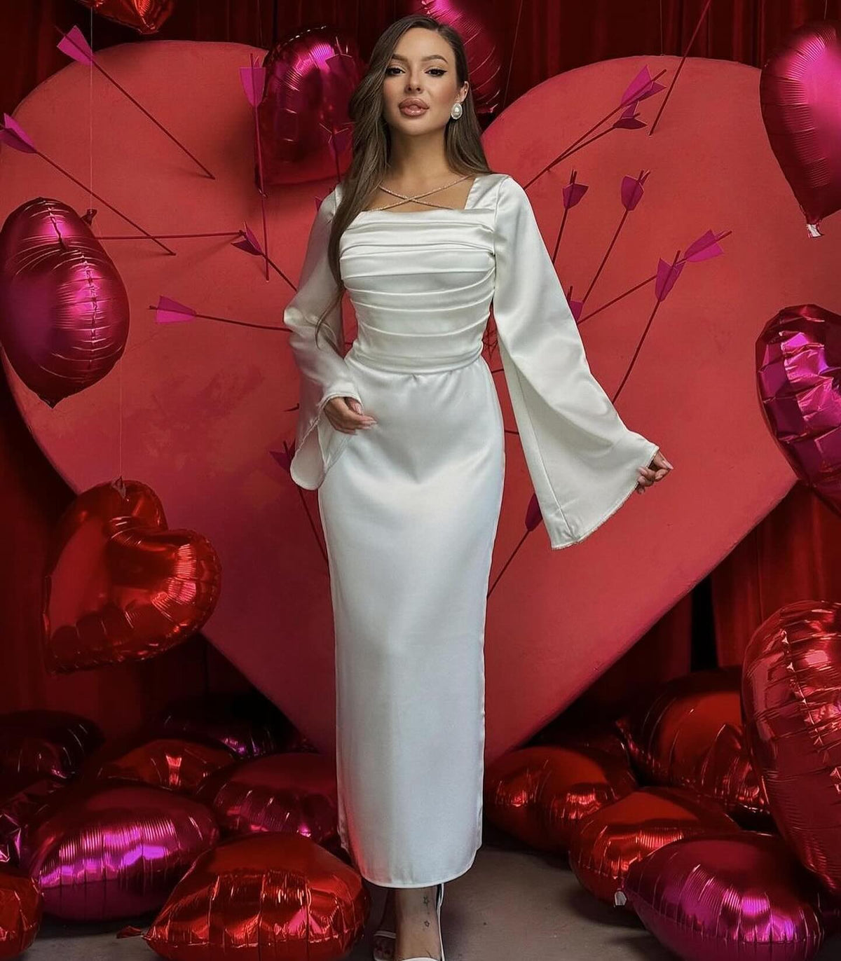 Elegant Emerald Green Long Sleeves Evening Dress SF028
