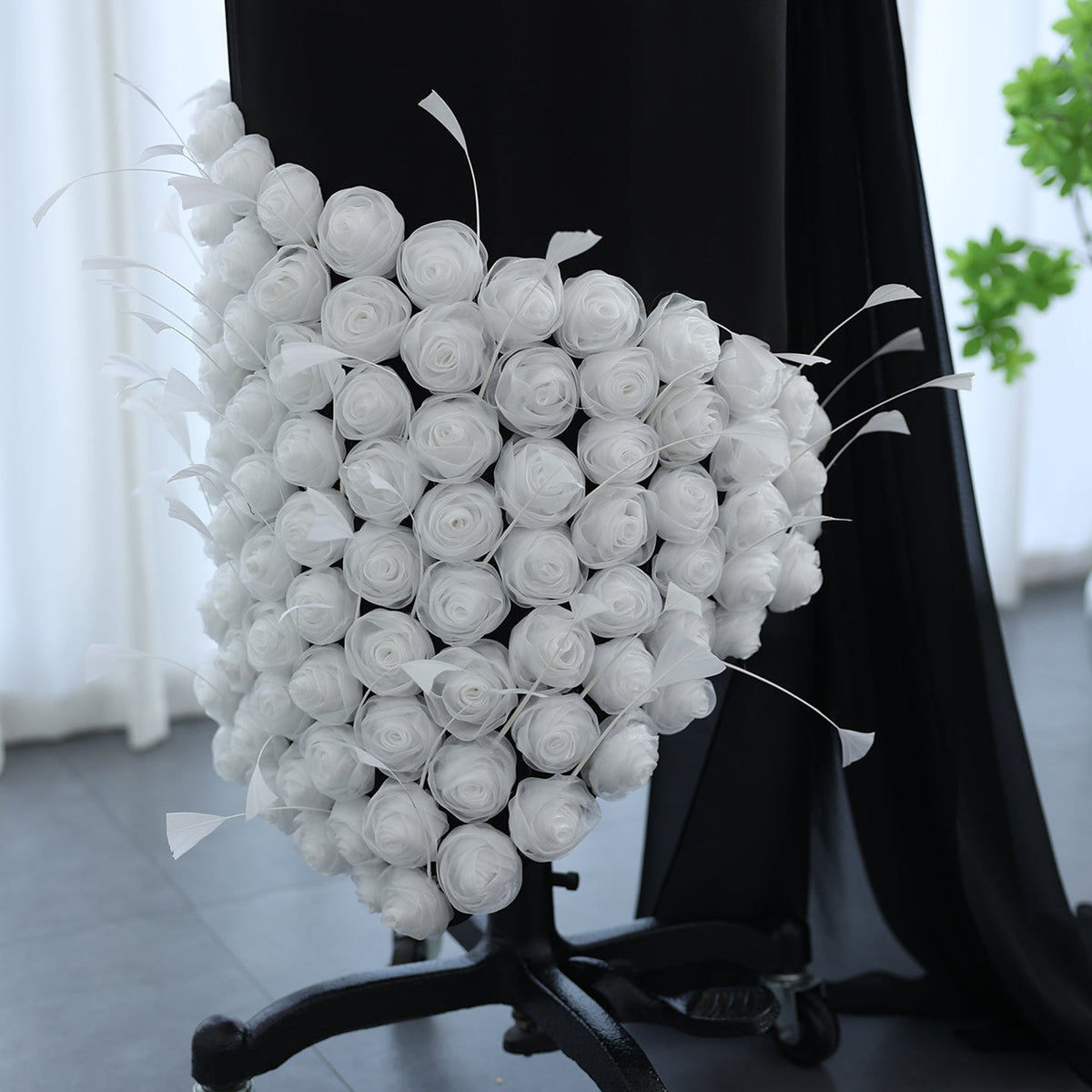 Elegant Feathers Black One Shoulder 3D Flowers Evening Dress SS488