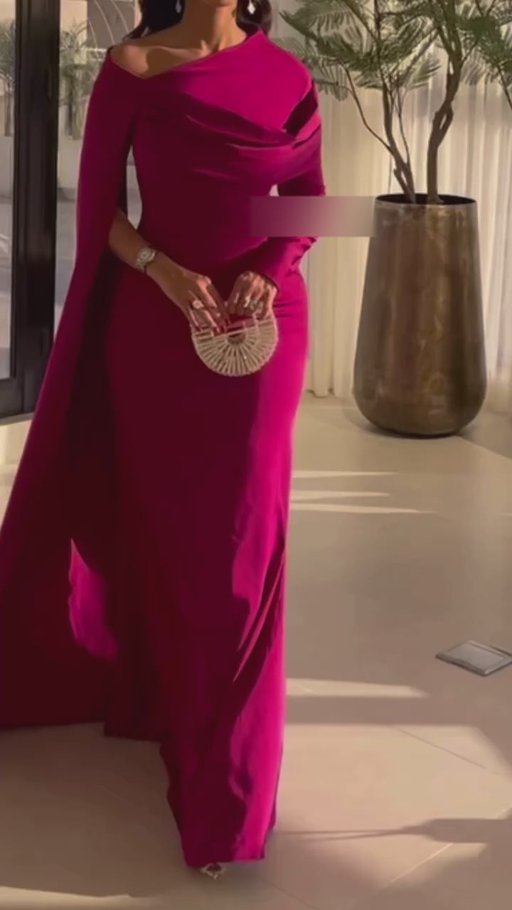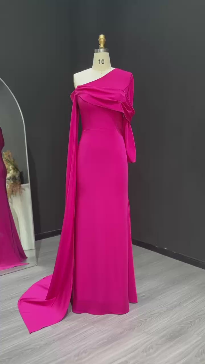 Elegant Fuchsia One Shoulder Evening Dress with Cape SF074