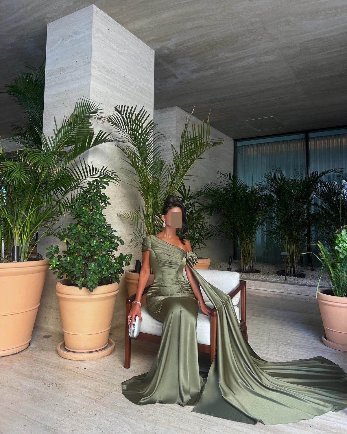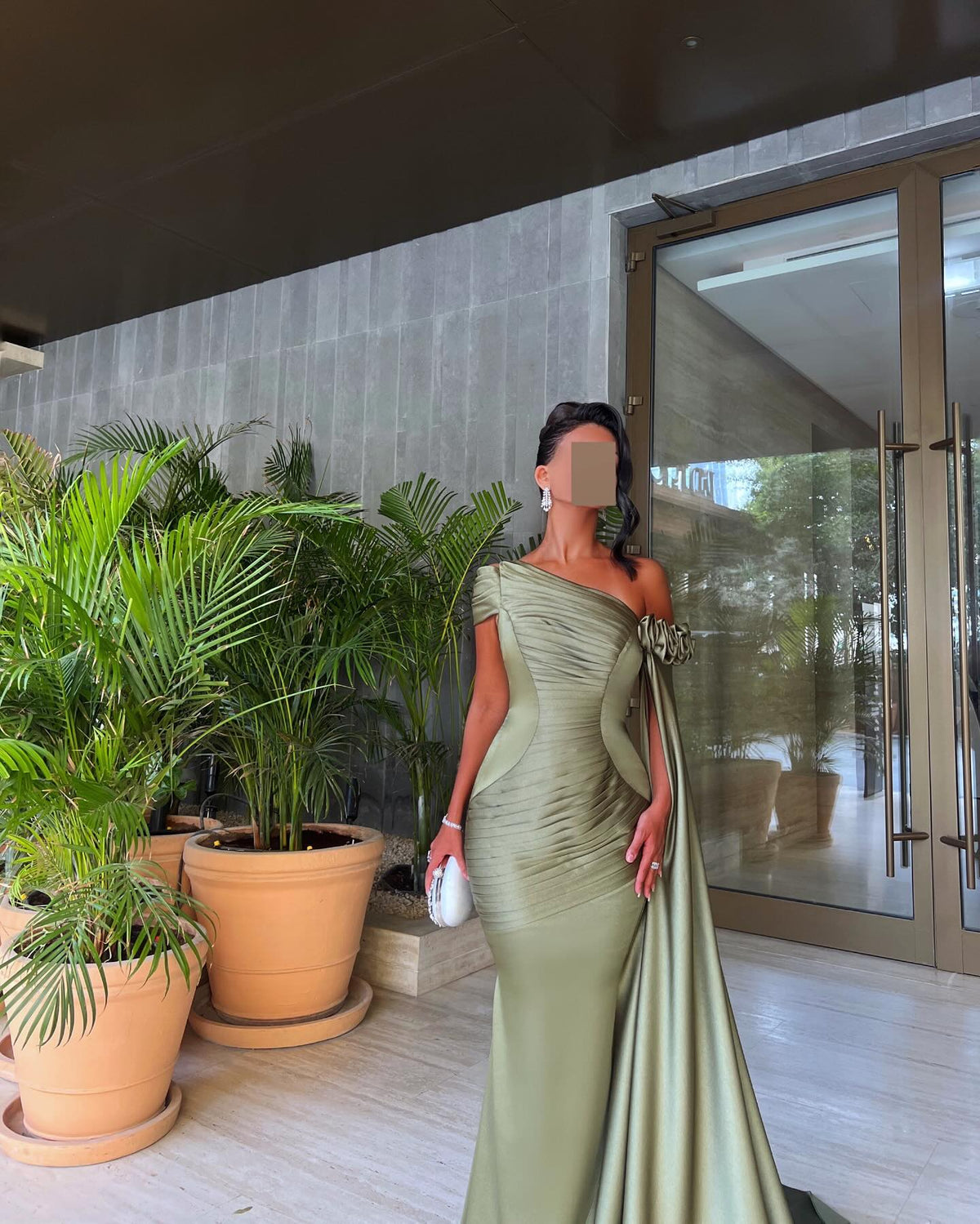 This elegant green mermaid evening dress, featuring a dramatic cape sleeve, is the perfect choice for any formal occasion. Made with high-quality fabric and expert craftsmanship, it will make you stand out in the crowd. The mermaid silhouette and cape sleeve provide a sleek and sophisticated look, while the green color adds a touch of uniqueness. Elevate your style with this stunning dress.