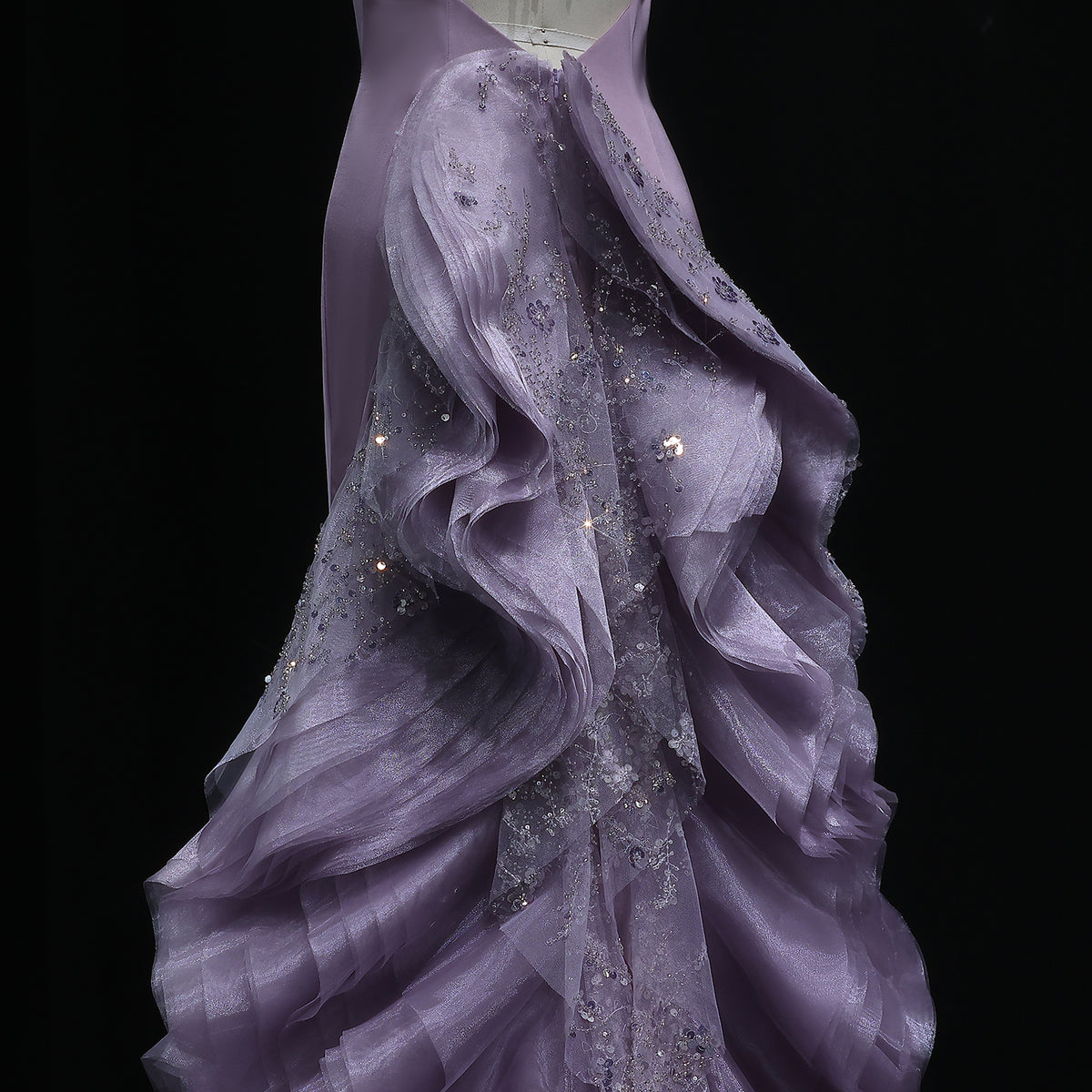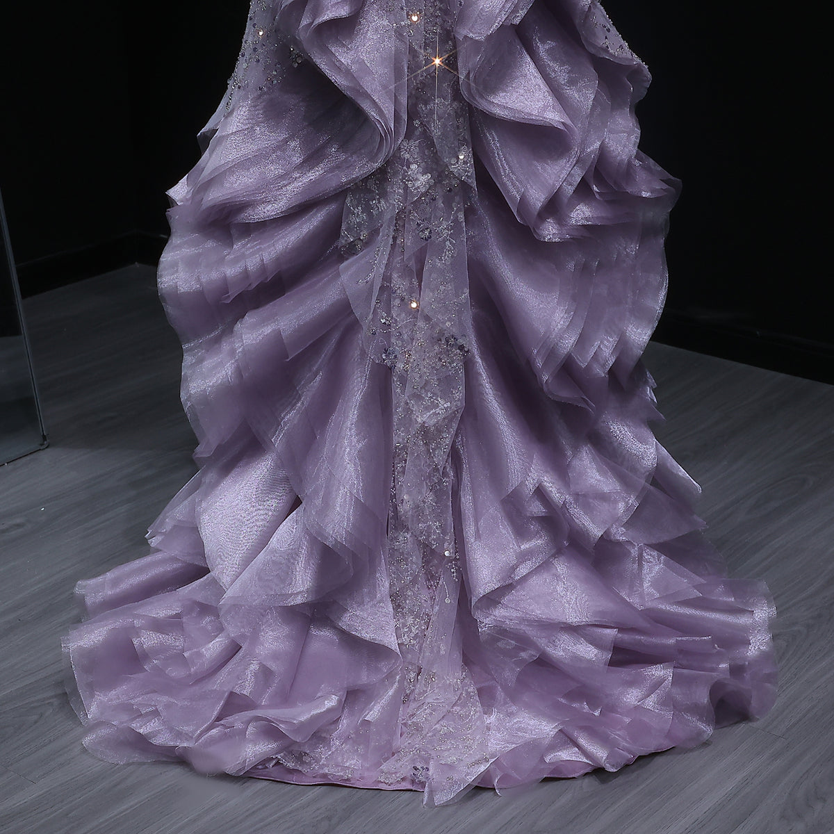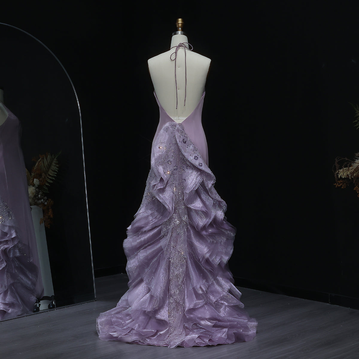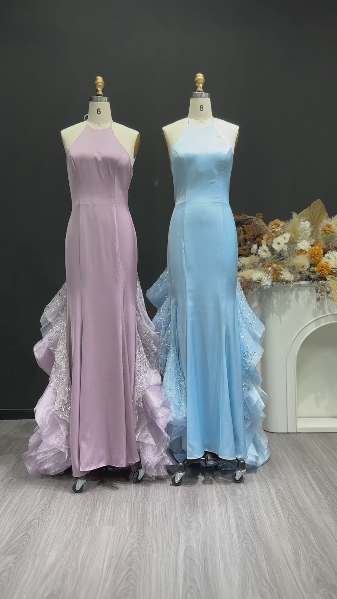 This Elegant Halter Blue Evening Dress with Ruffles Train SS524 exudes sophistication and grace. The halter neckline and ruffled train add a touch of elegance, while the blue color adds a pop of color. Perfect for special occasions, this dress is sure to make a statement.