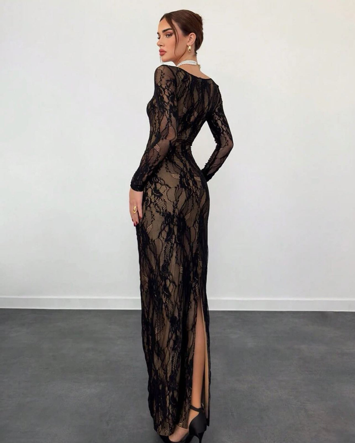 Embody elegance with our Elegant Long Sleeves Black Sheath Lace Evening Dress SF598. The delicate lace and long sleeves add a touch of sophistication, while the sheath silhouette flatters your figure. Perfect for any evening event, this dress will have you standing out in style.