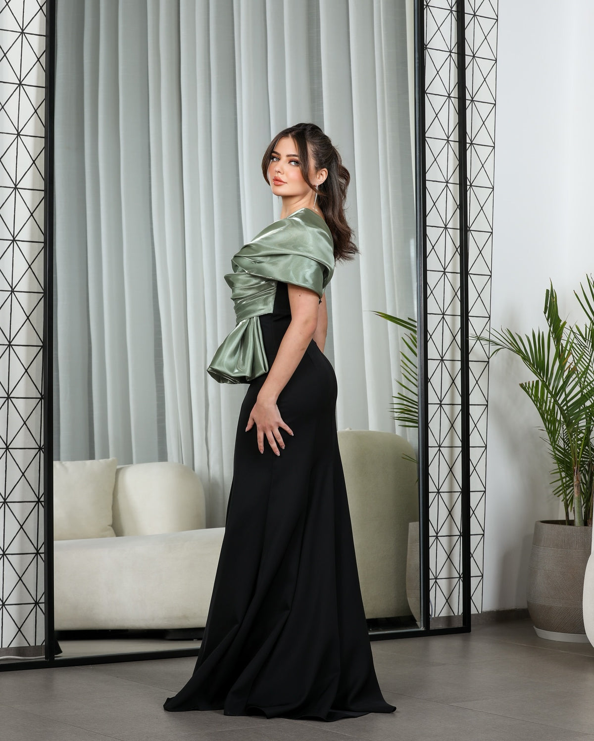 Elegant One Shoulder Green&Black Mermaid Evening Dress SF511
