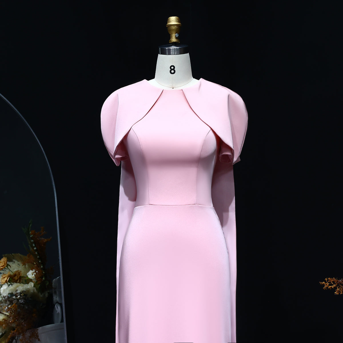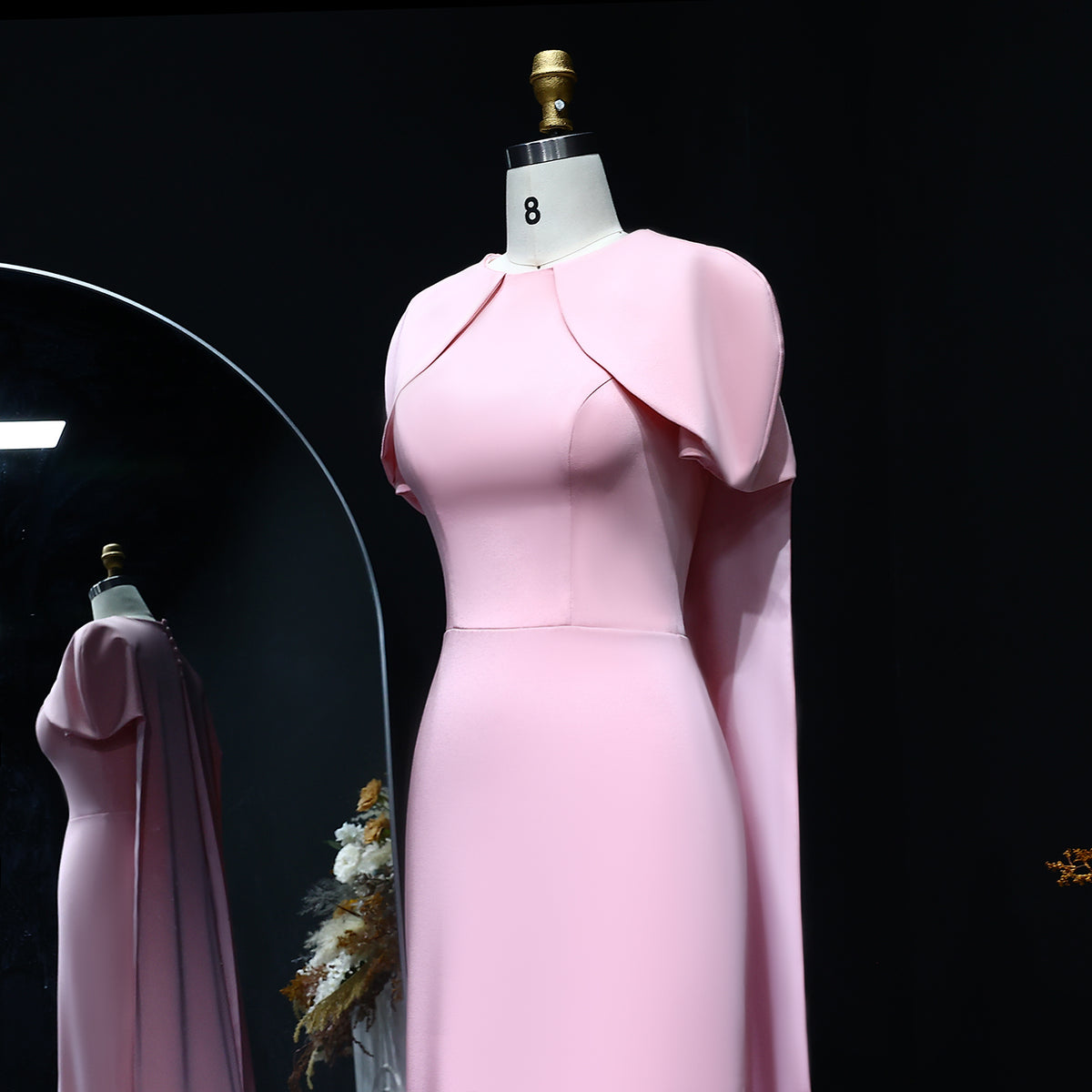 This elegant pink evening dress features a flattering O-neck design and a mermaid silhouette that enhances your figure. The delicate cape sleeves add a sophisticated touch, creating graceful movement and a refined look. Perfect for formal occasions, this dress combines classic style with modern elegance to ensure you stand out with confidence.