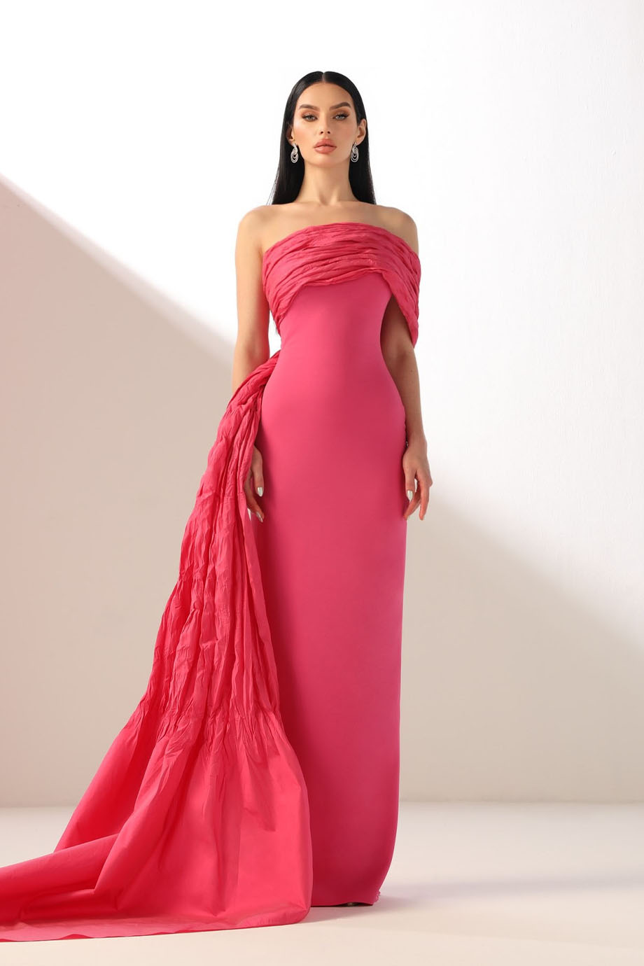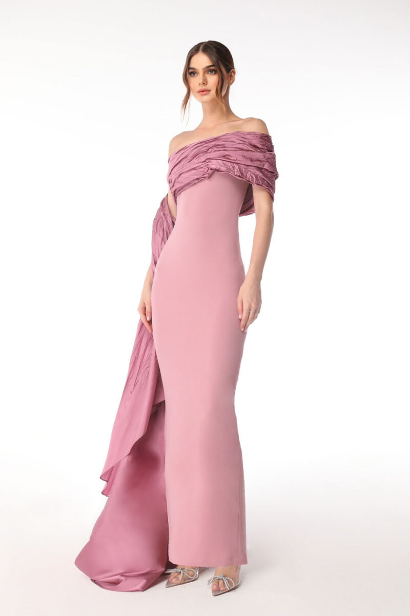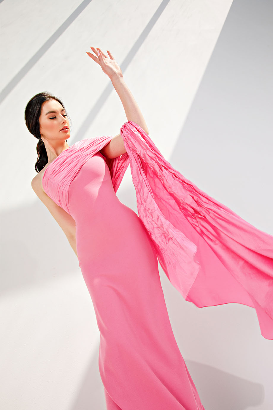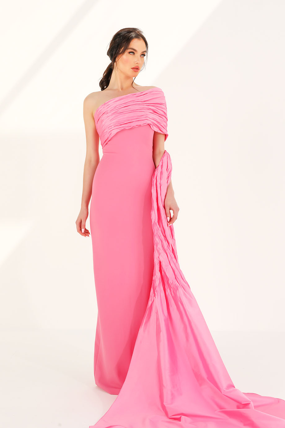 Elegant Pink One Shoulder Evening Dress with Overskirt SF448