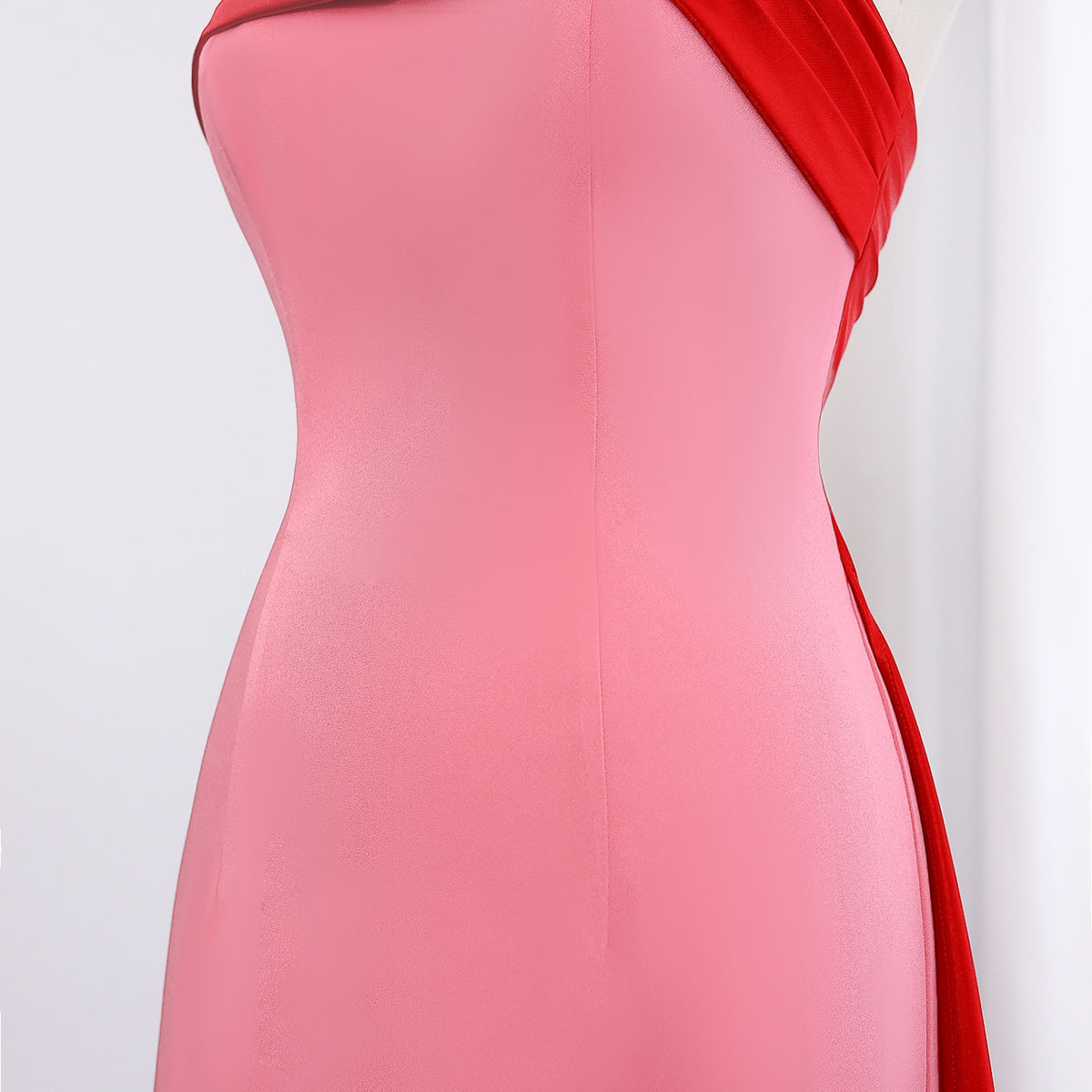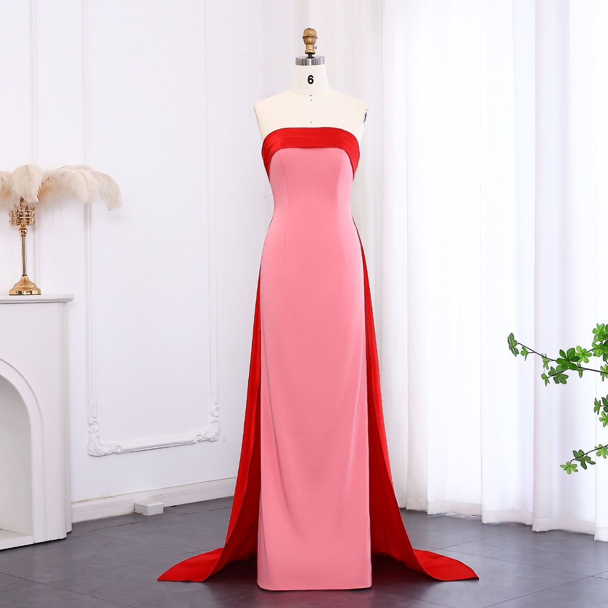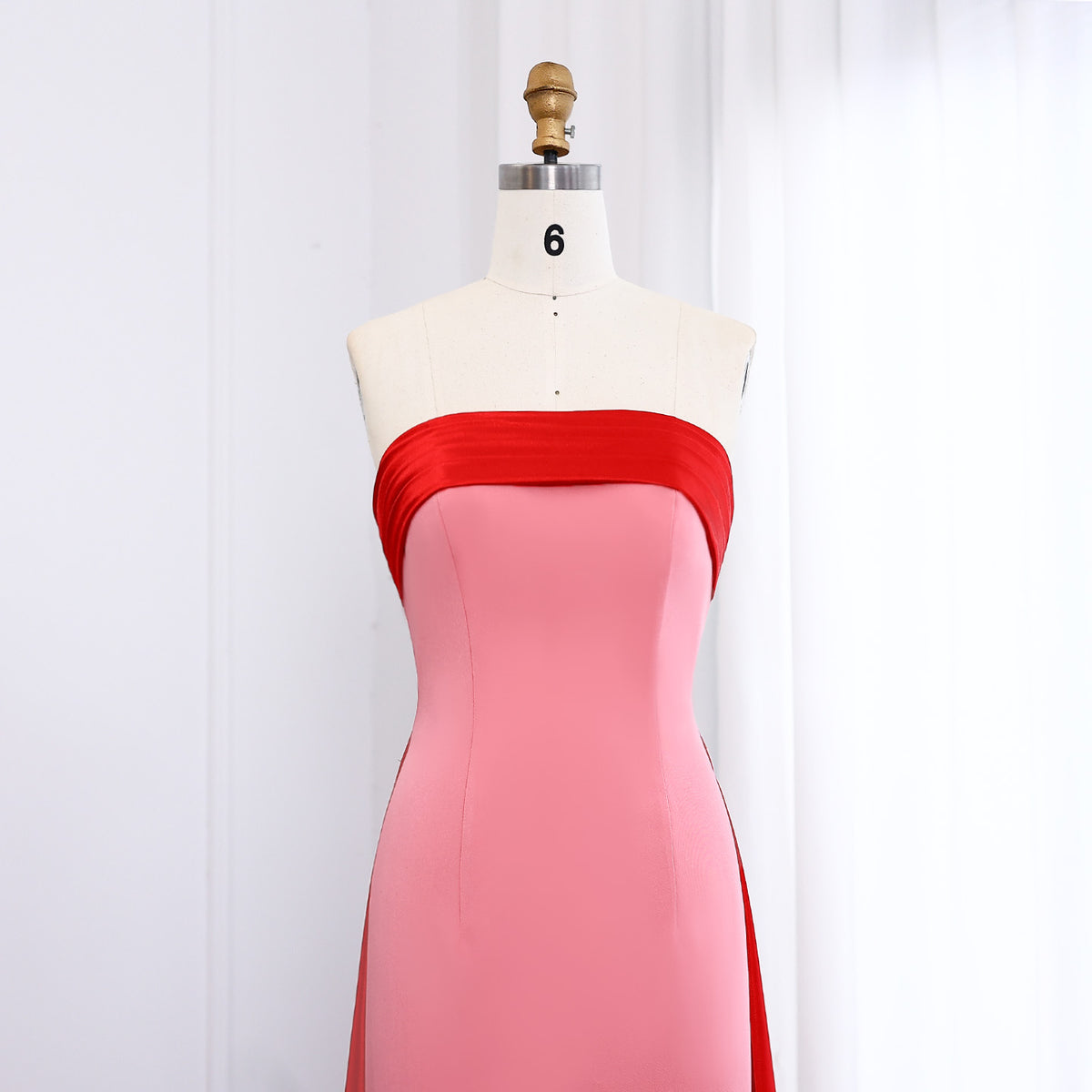Elegant Pink&Red Strapless Satin Evening Dress with Overskirt SF293