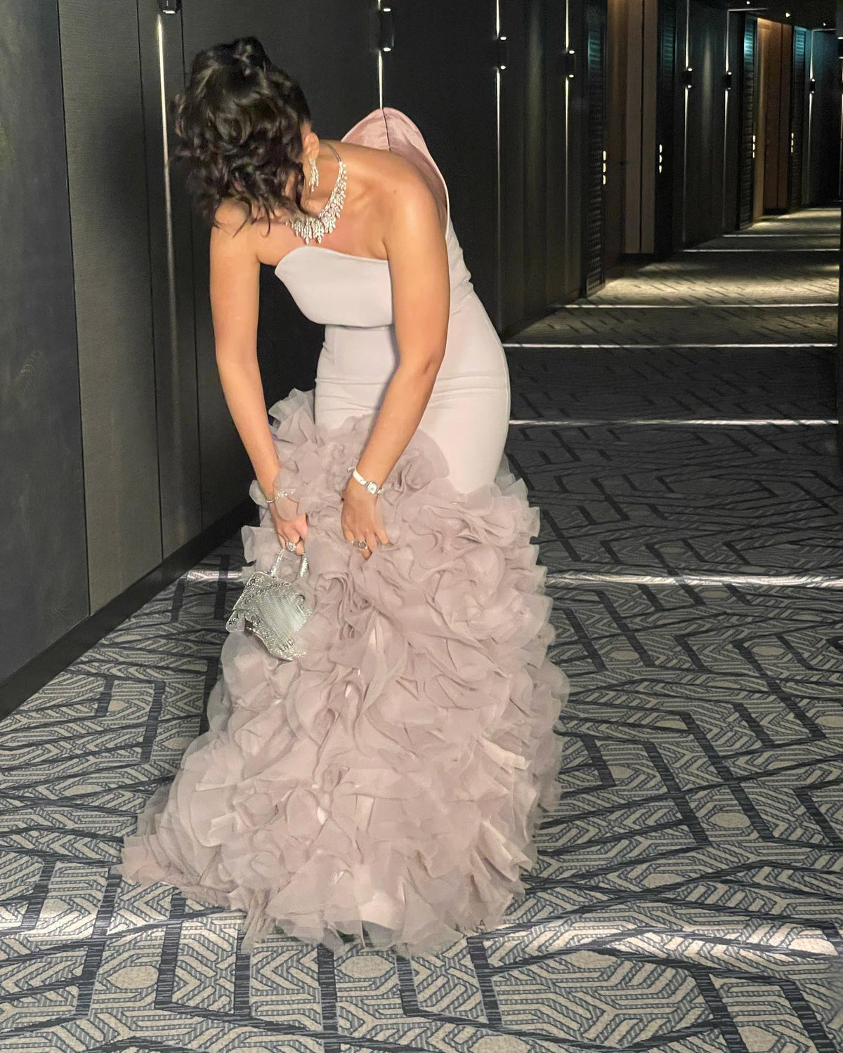 Elegant Pink Strapless Ruffles Evening Dress SF107