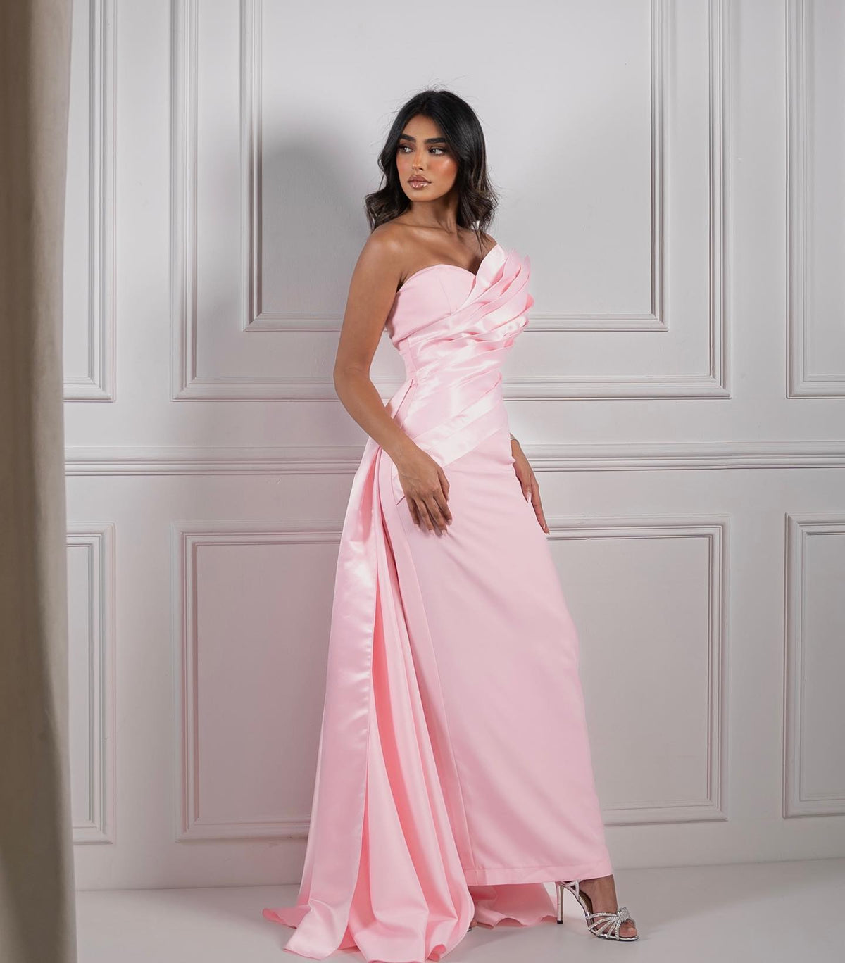 Discover the perfect blend of elegance and femininity with our Elegant Pink Strapless Evening Dress with Overskirt SF288. Crafted with delicate pink fabric, this strapless dress features an overskirt for a touch of drama. Perfect for any formal occasion, this dress will make you feel confident and stylish.