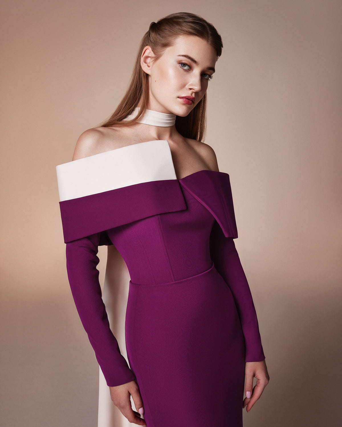 Elegant Purple Long Sleeves Satin Evening Dress SF106