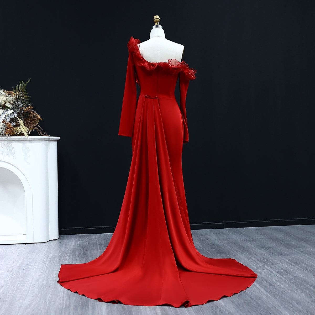 Elevate your evening look with our Elegant Purple Ruffles Off Shoulder Dress! With a stunning off-shoulder design and delicate ruffles, this dress exudes elegance and sophistication. The added overskirt SF142 adds a touch of drama and glamour to complete your perfect night out ensemble. Say yes to this dress and make a statement that will leave others in awe!