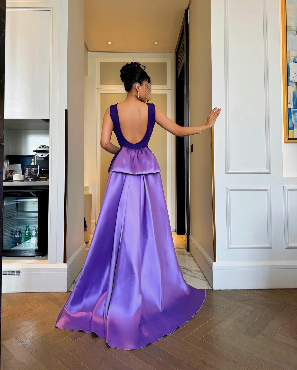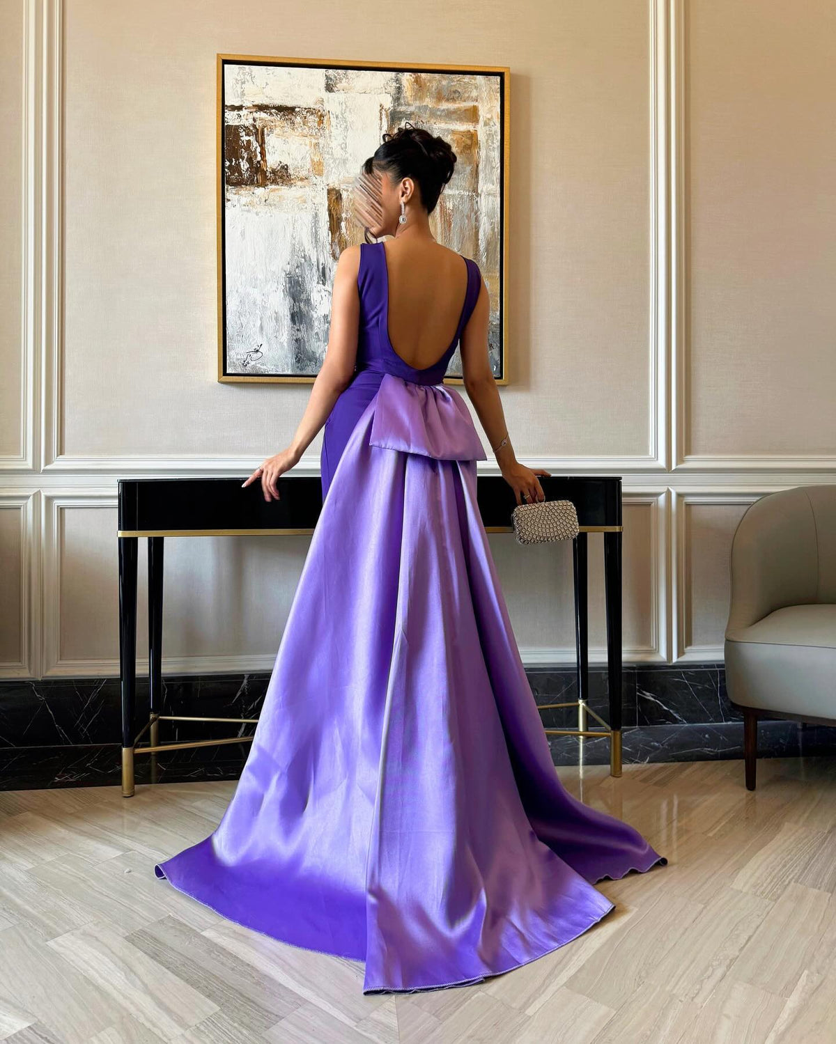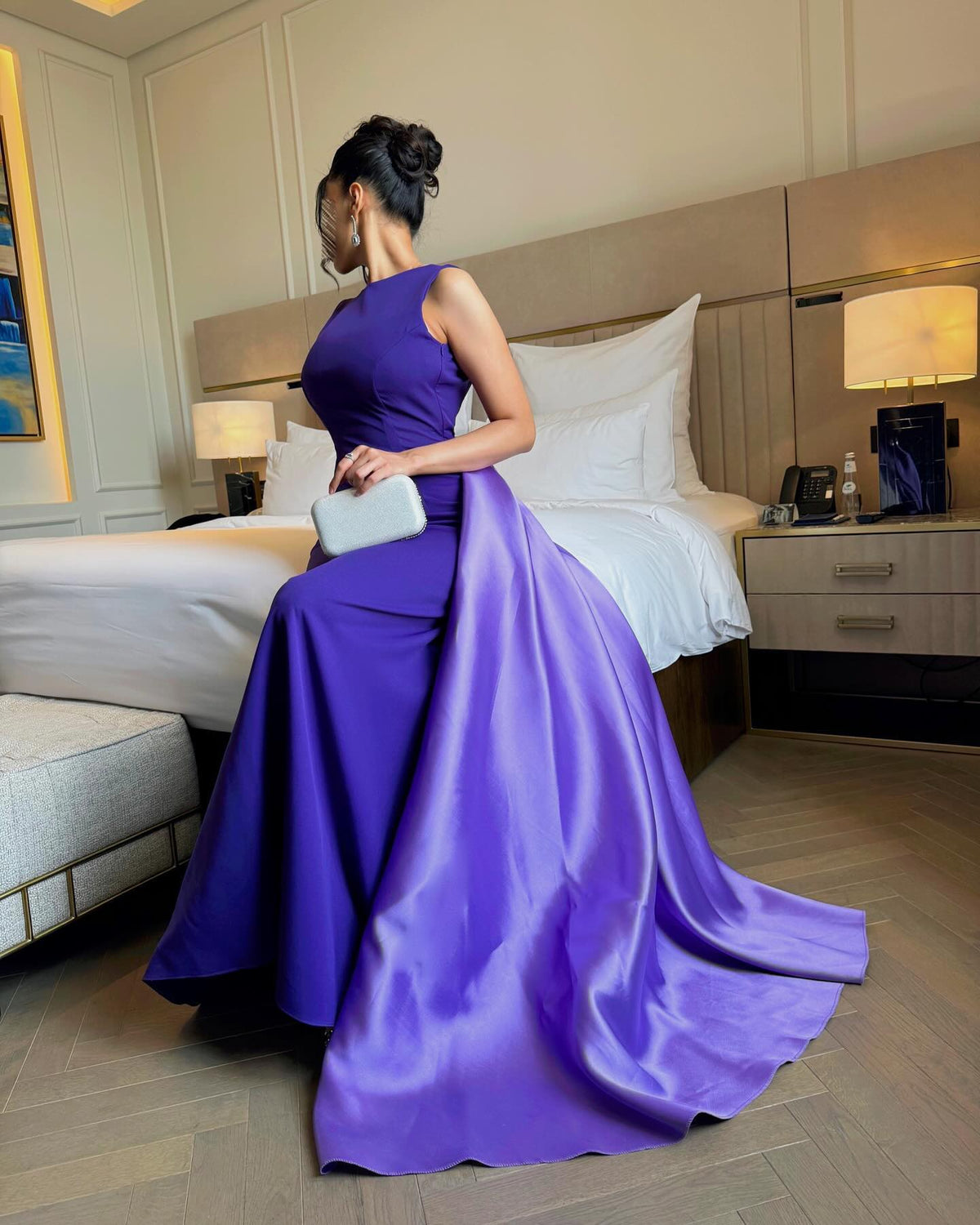 Elegant Purple Satin Evening Dress with Overskirt SF419