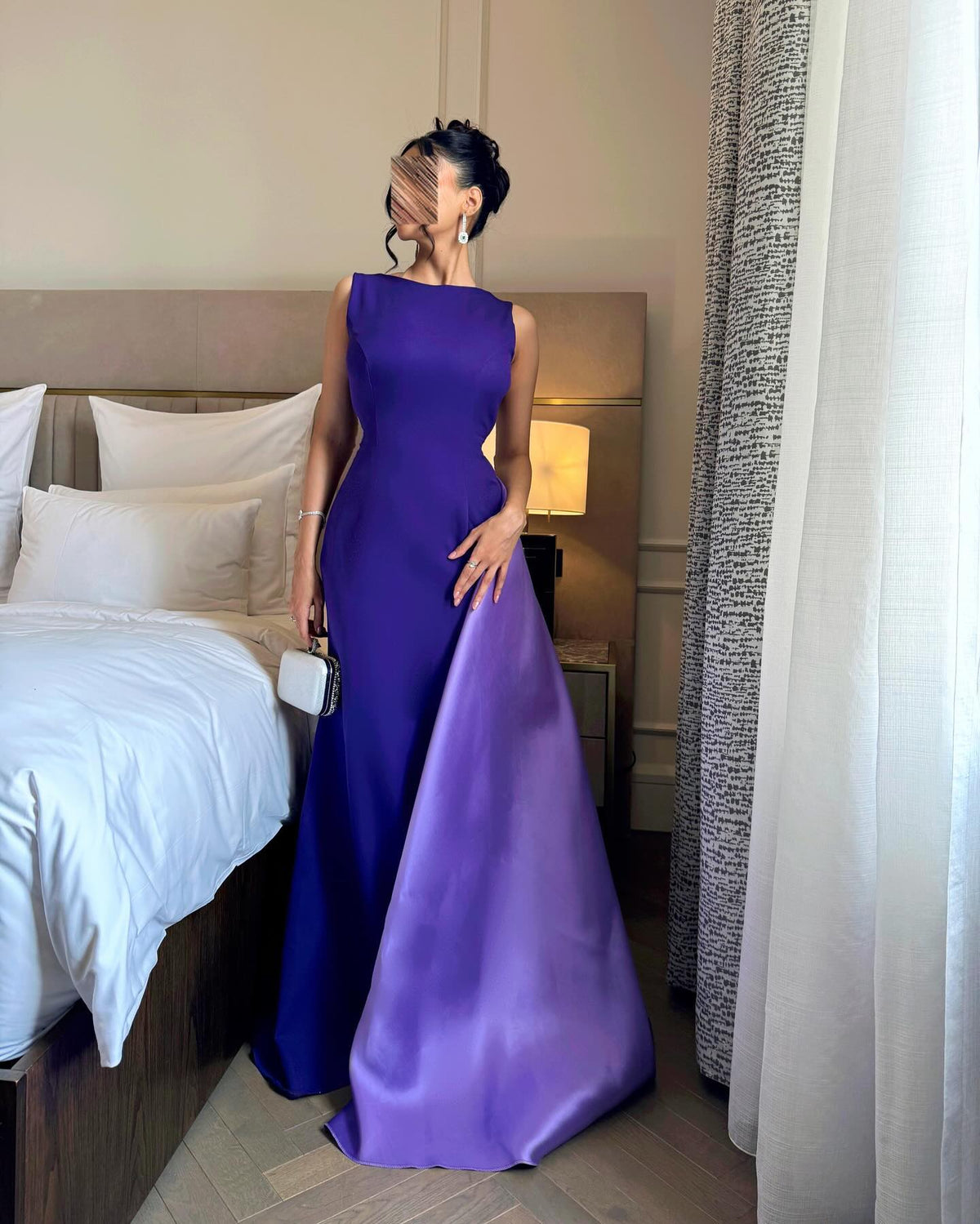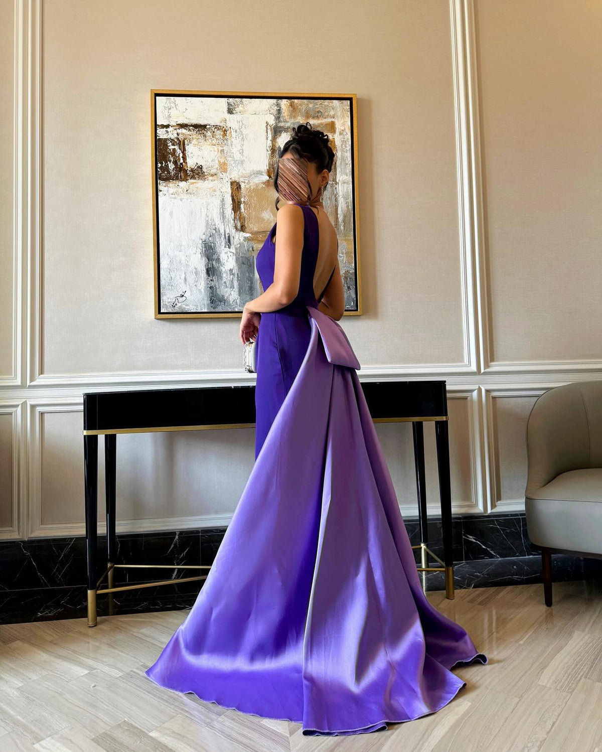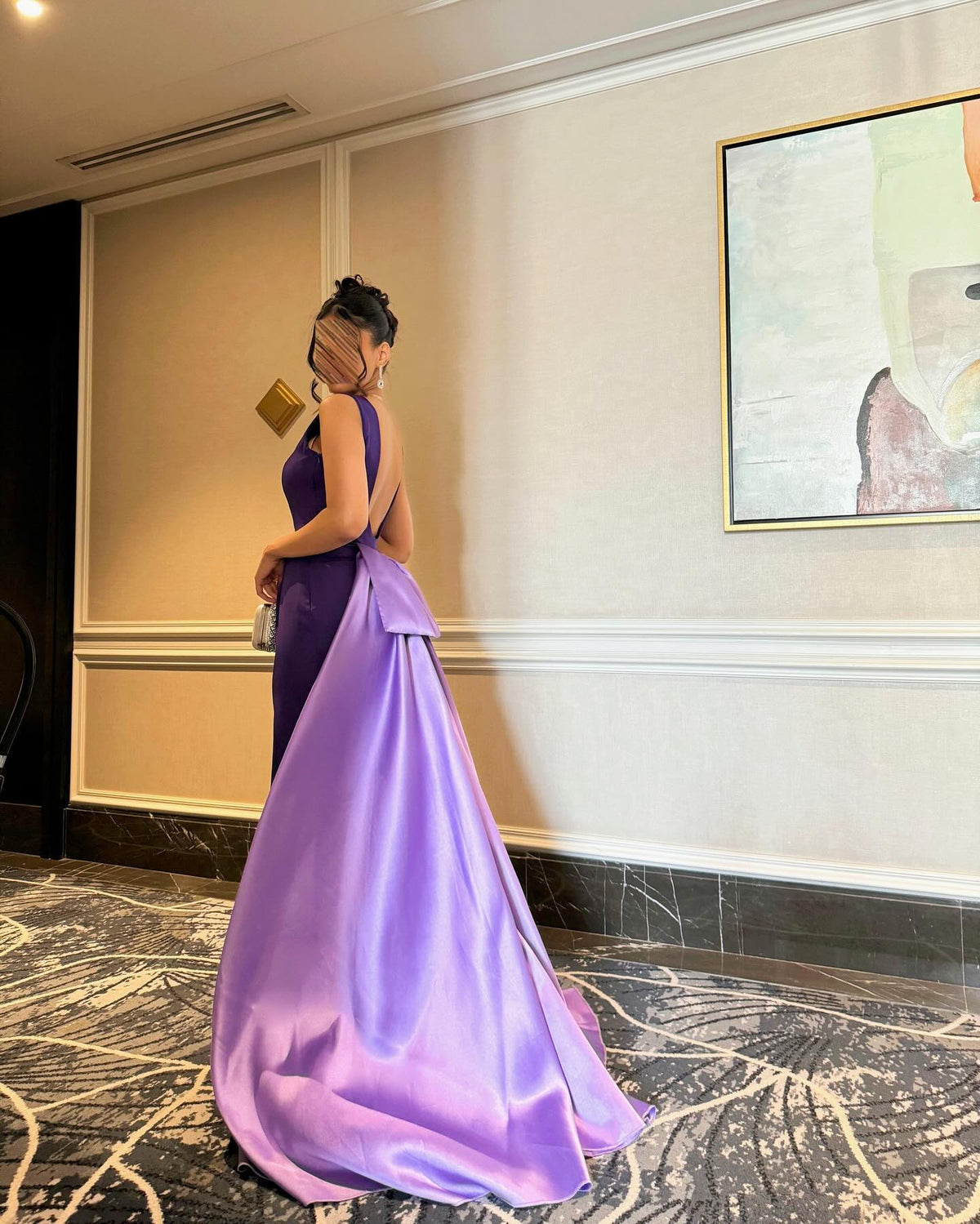 Elegant Purple Satin Evening Dress with Overskirt SF419