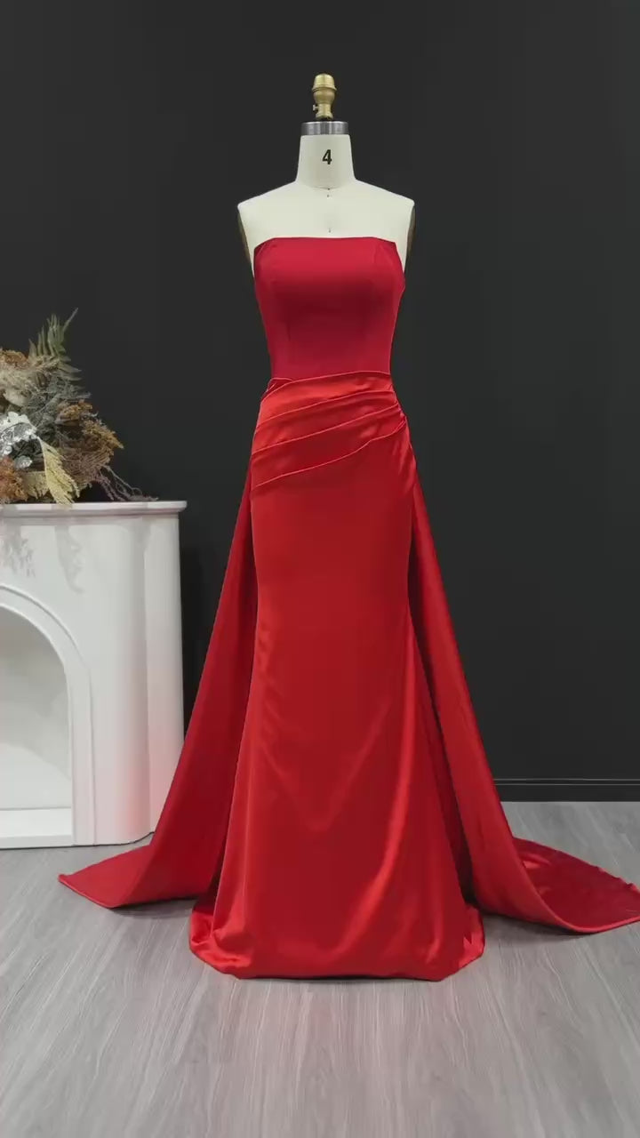 Elegant Red Strapless Evening Dresses with Overskirt SF255
