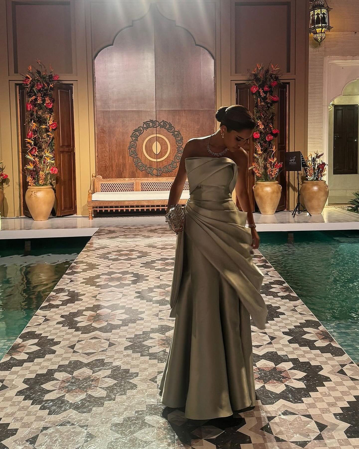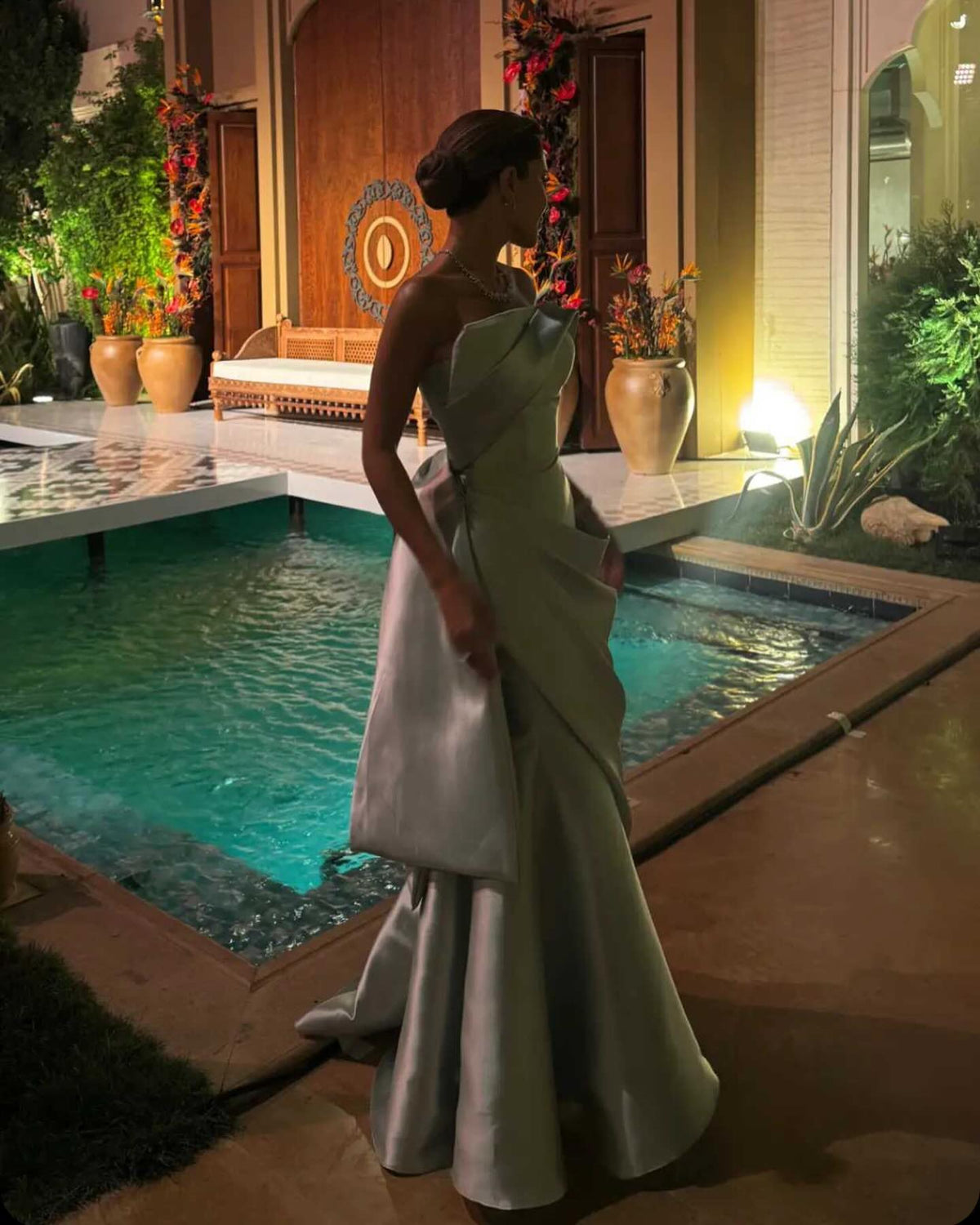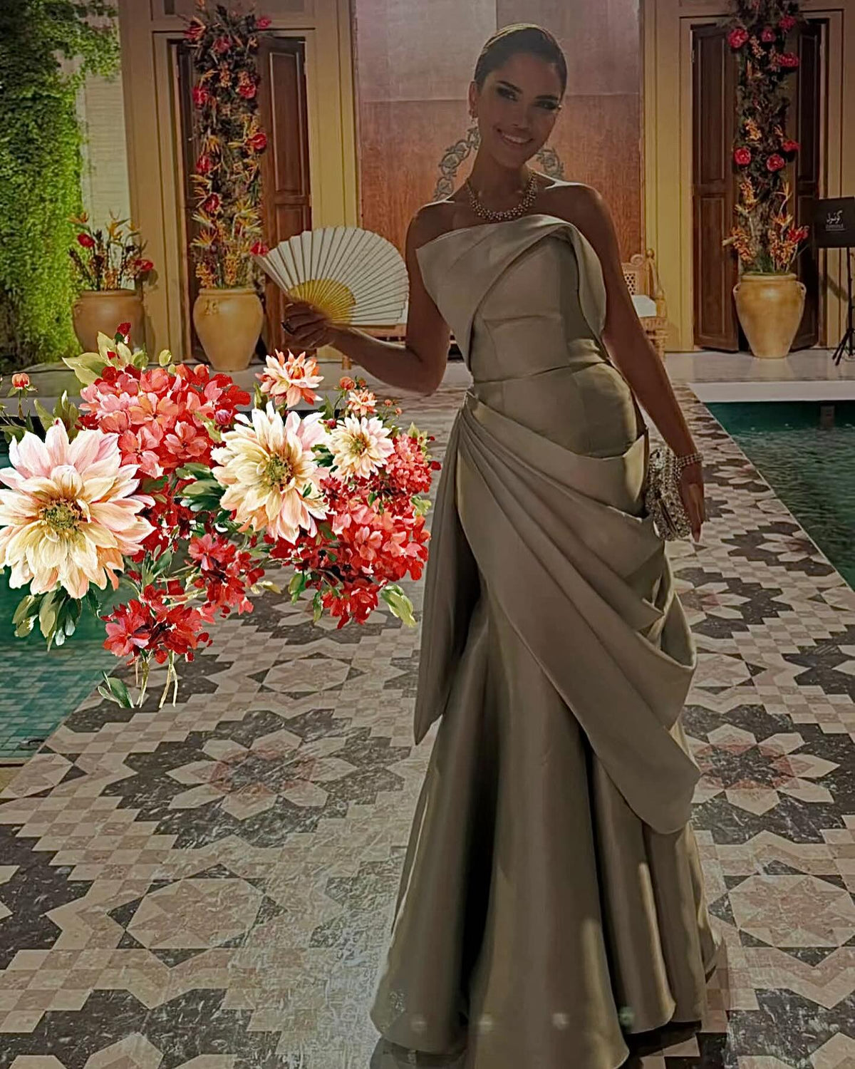 Elegant Silver Gray Strapless Pleated Evening Dress SF231