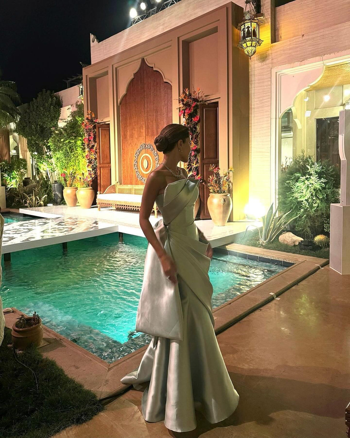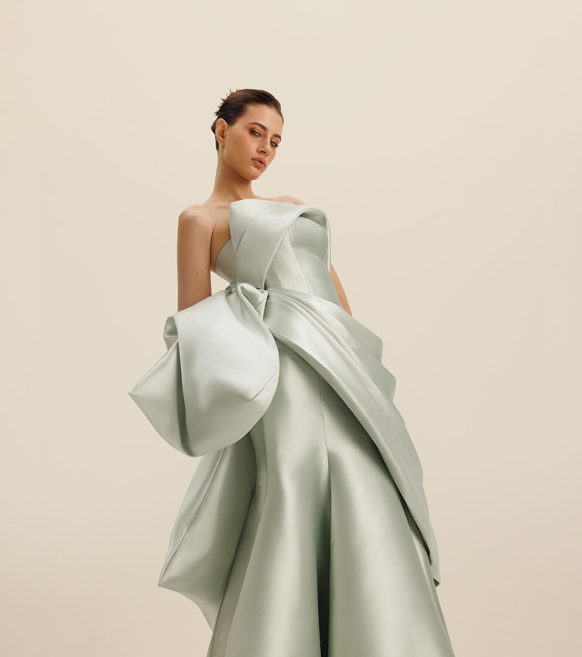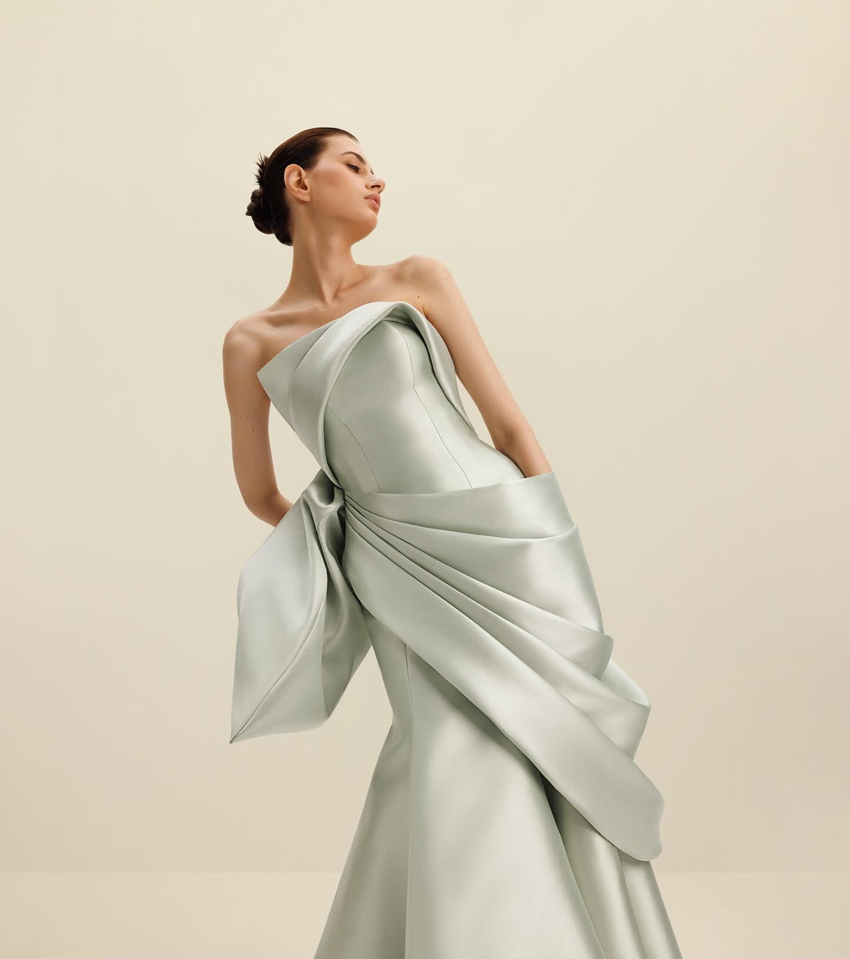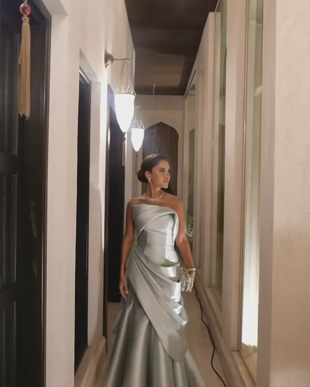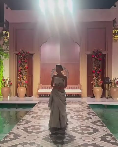 This elegant silver gray evening dress, SF231, will make you stand out at any formal event. Its strapless design and pleated detailing create a timeless and sophisticated look. Made with quality materials, this dress is comfortable, stylish, and perfect for any special occasion.