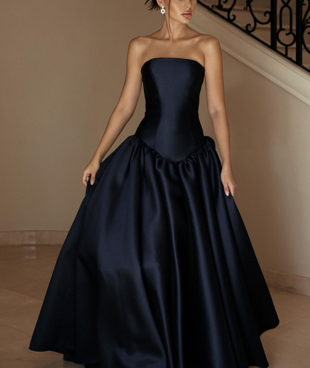 Elegant Strapless Dark Navy A-Line Evening Dress SF480