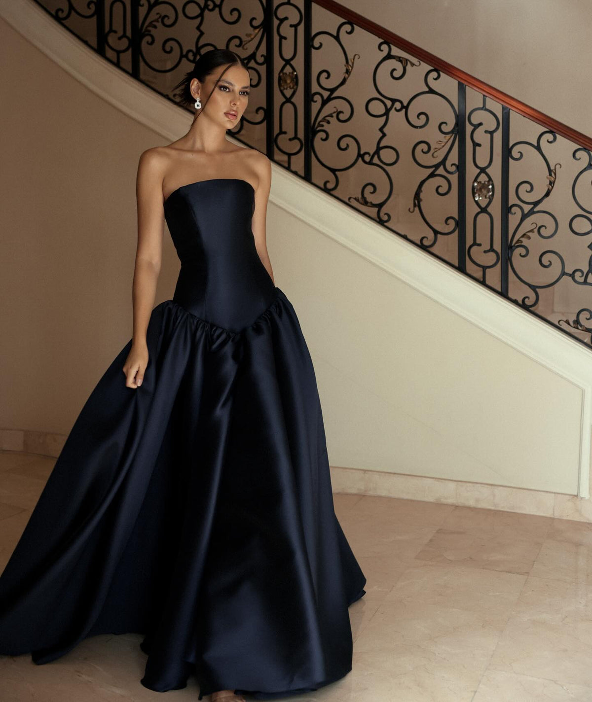 This Elegant Strapless Dark Navy A-Line Evening Dress SF480 is the perfect choice for any formal event. Made with high-quality materials, it features a classic A-line silhouette and a strapless neckline for a timeless look. The dark navy color adds a touch of sophistication, making you stand out in any crowd. Elevate your evening attire with this stunning dress.