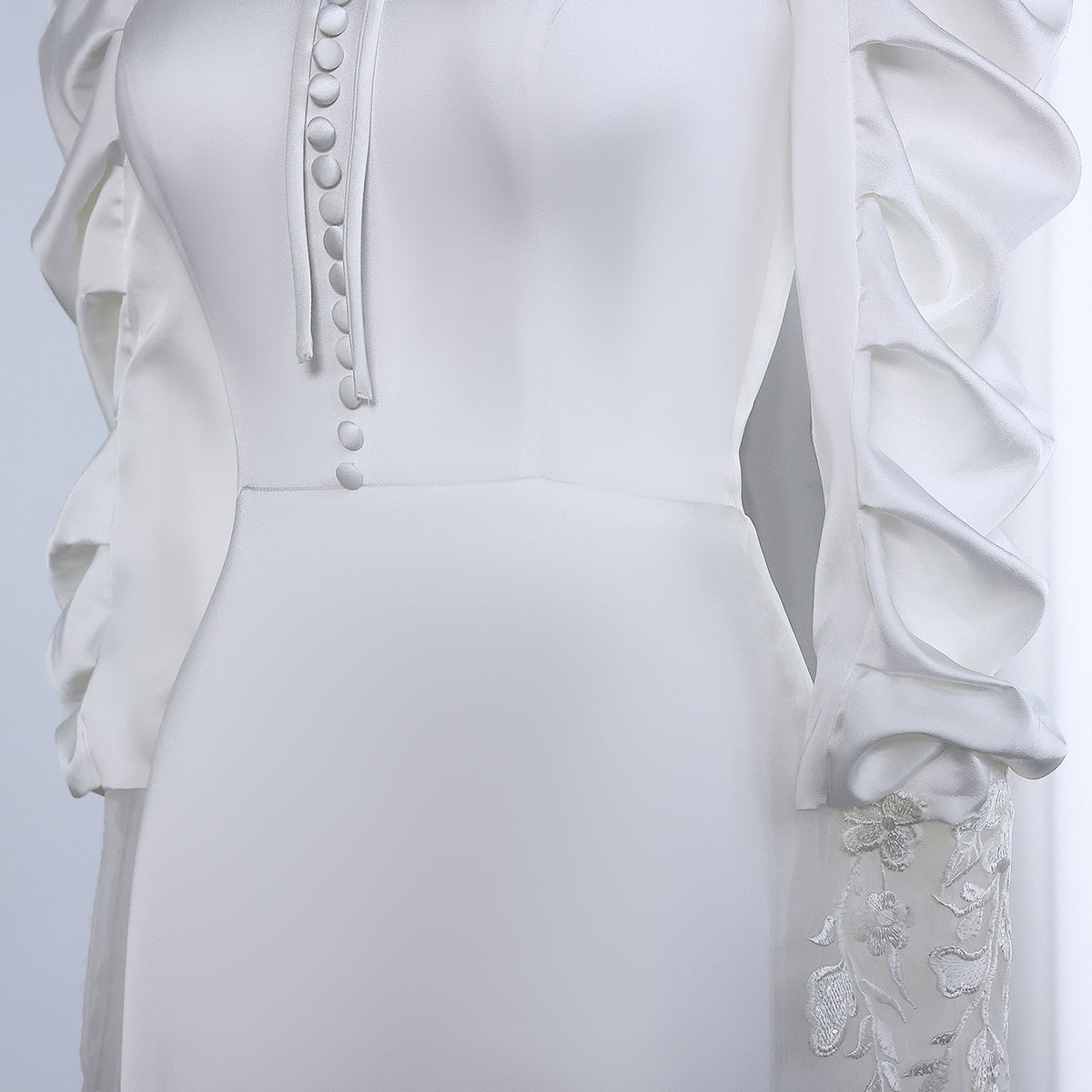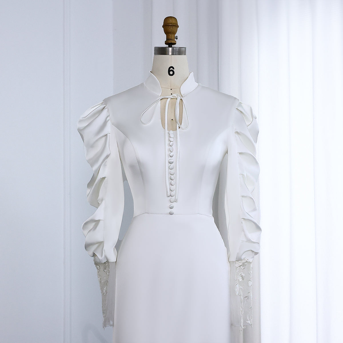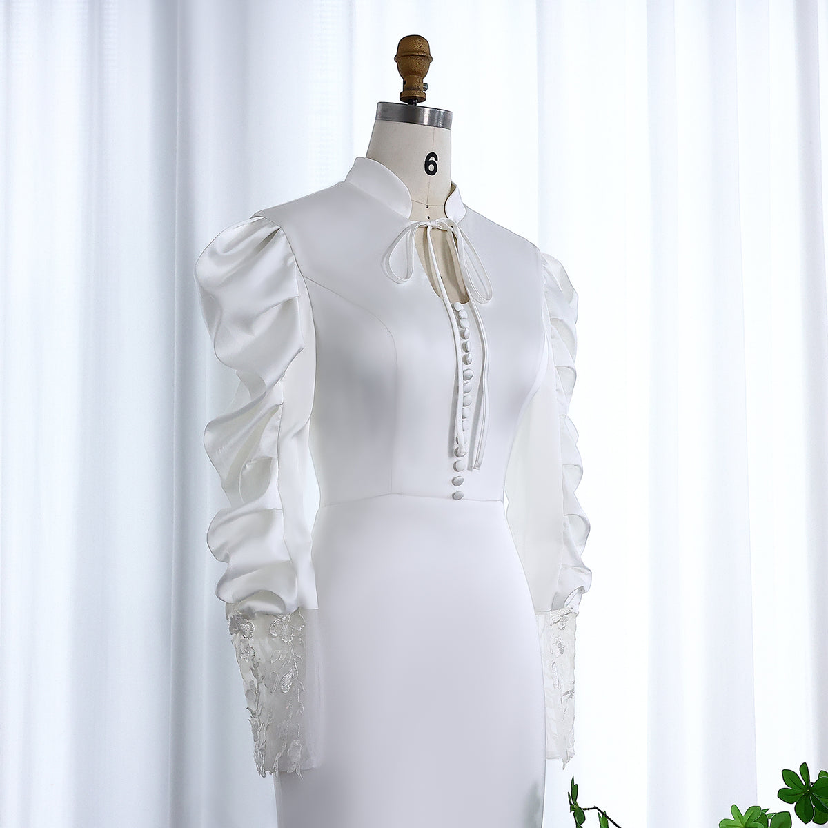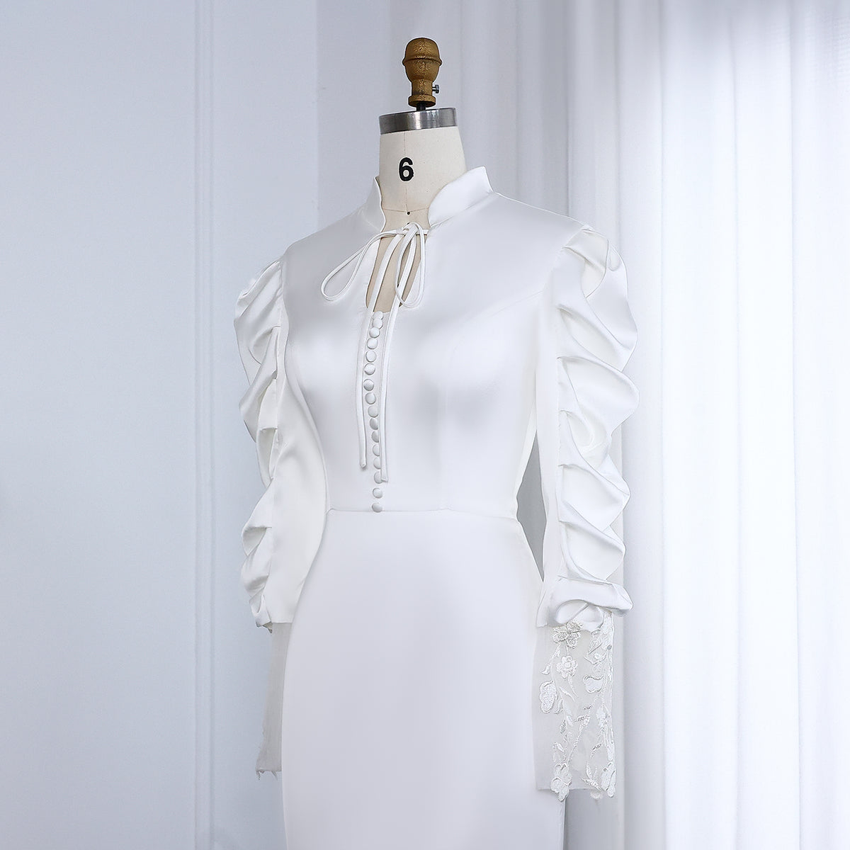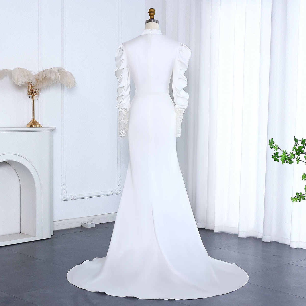 Elegant White Long Sleeves Mermaid Evening Dress with Embroidery SF560