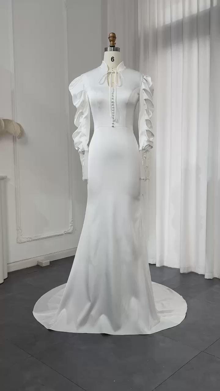 Dress to impress in our Elegant White Long Sleeves Mermaid Evening Dress with Embroidery SF560. Made with stunning embroidery and a flattering mermaid silhouette, this dress is perfect for any special occasion. With long sleeves, you'll stay both stylish and comfortable all night long.