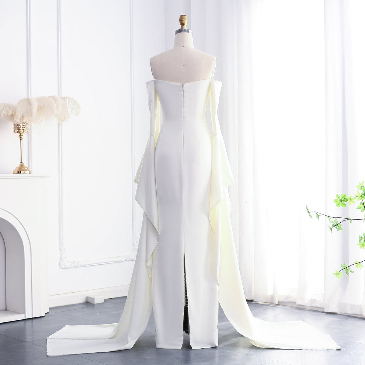 Elegant Lvory Off shoulder Evening Dress SF050