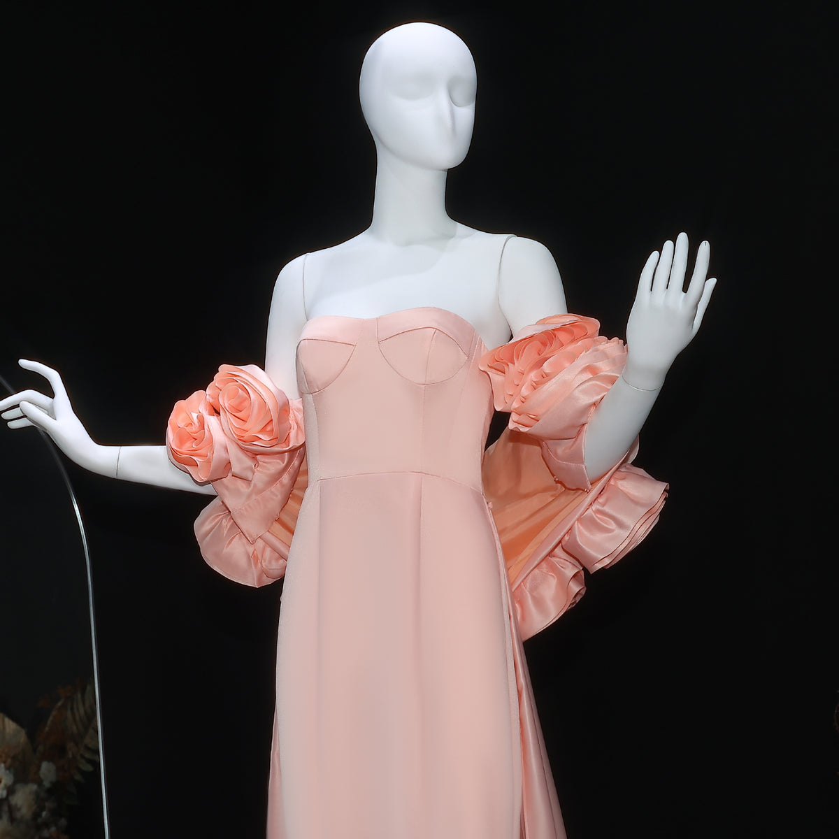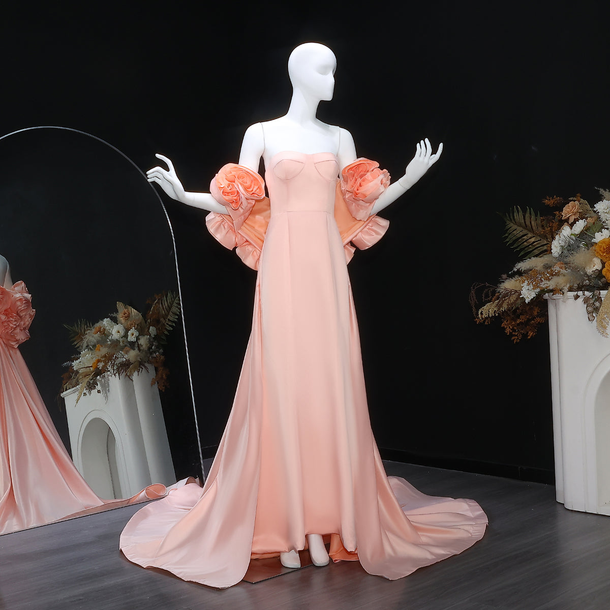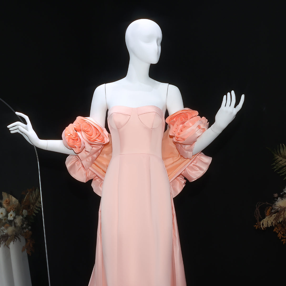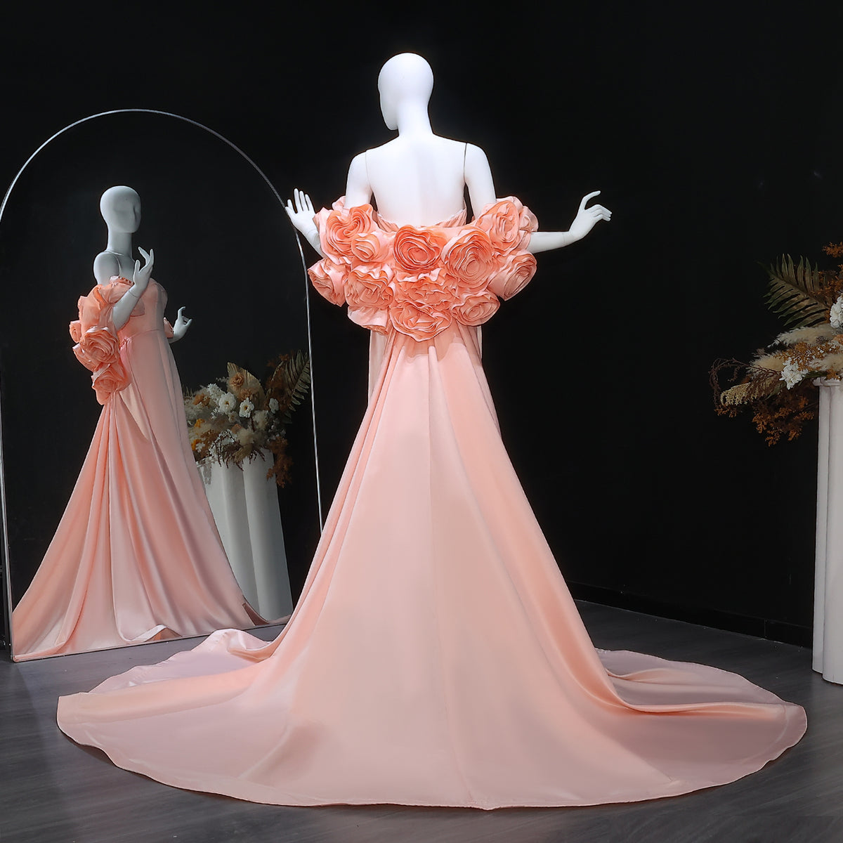 Indulge in elegance and glamour with our 3D floral pink evening dress with overskirt SF346. The intricate floral design adds a touch of femininity, while the overskirt adds a unique and sophisticated flair. Perfect for any special occasion, this dress will make you stand out in style.