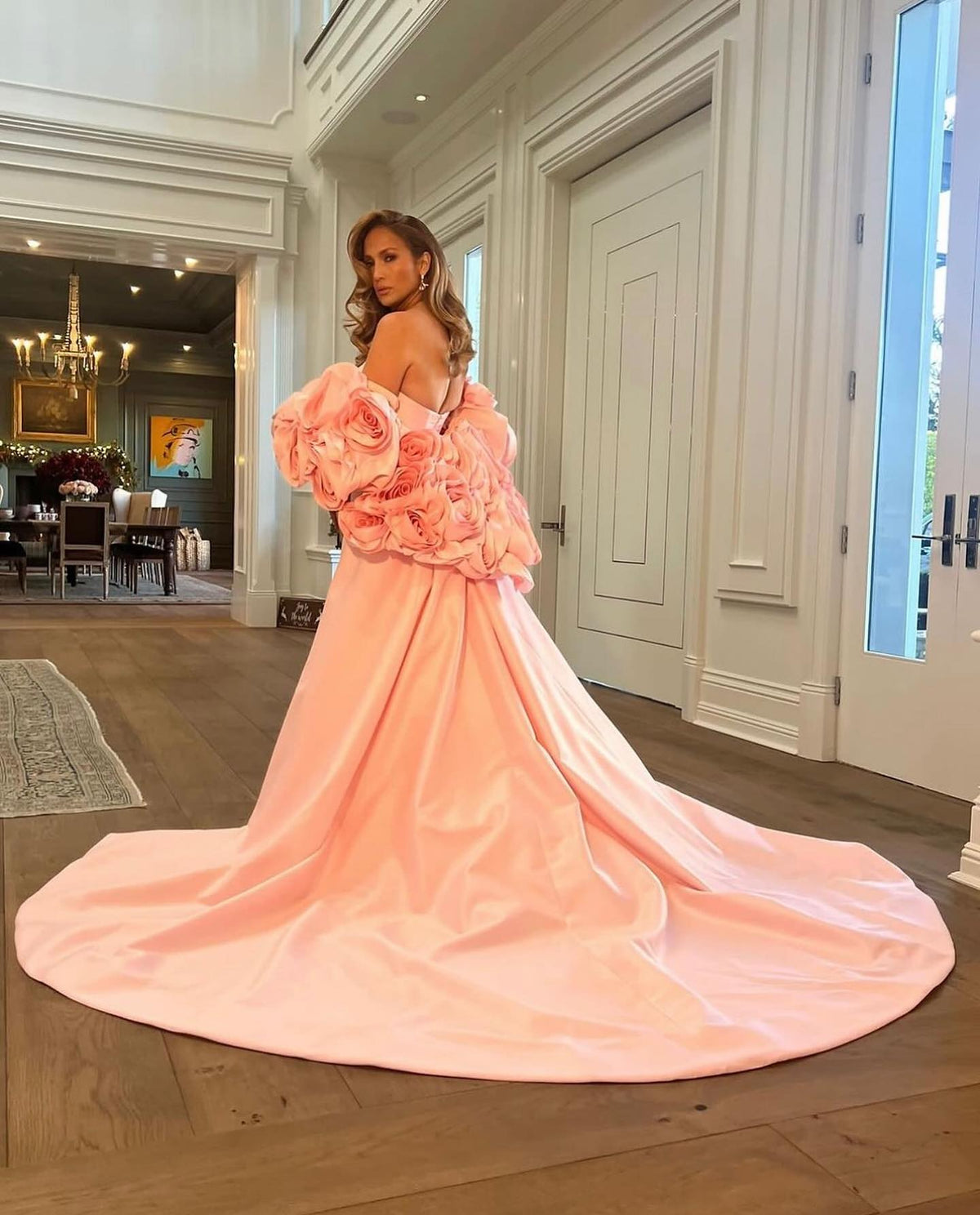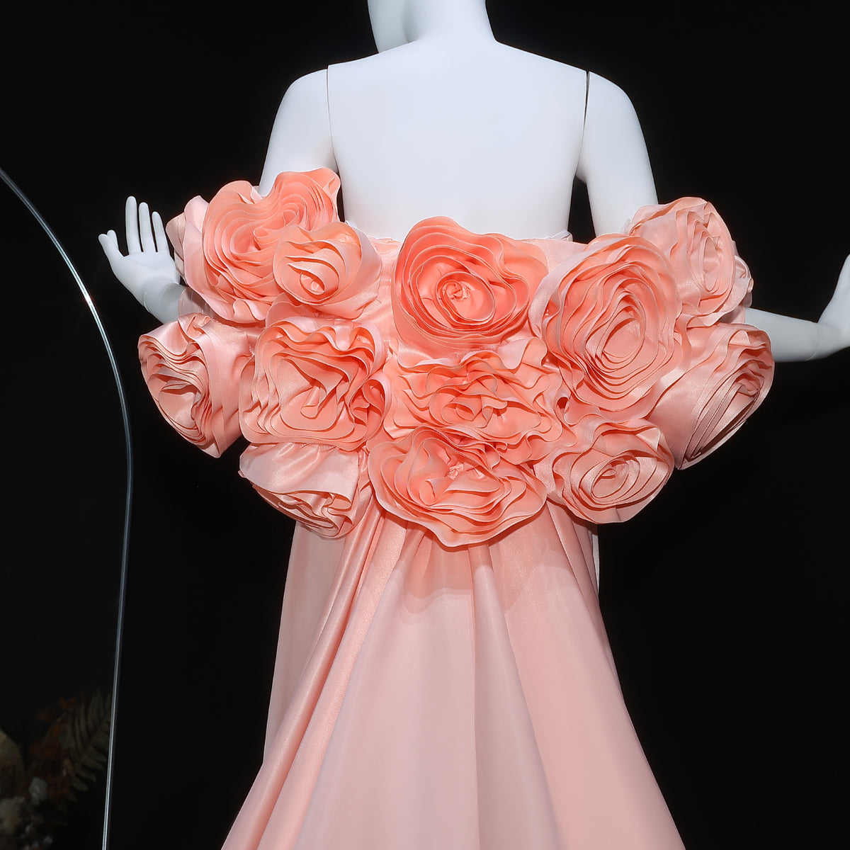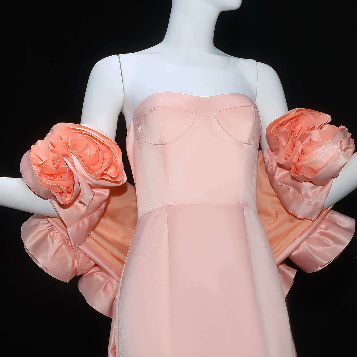 Glamorous 3D Floral Pink Evening Dress with Overskirt SF346