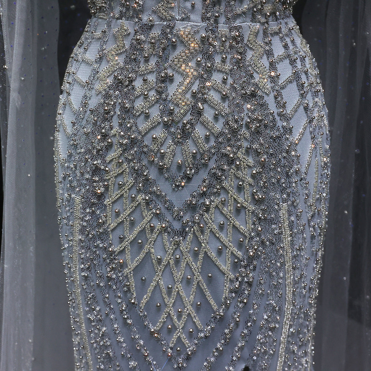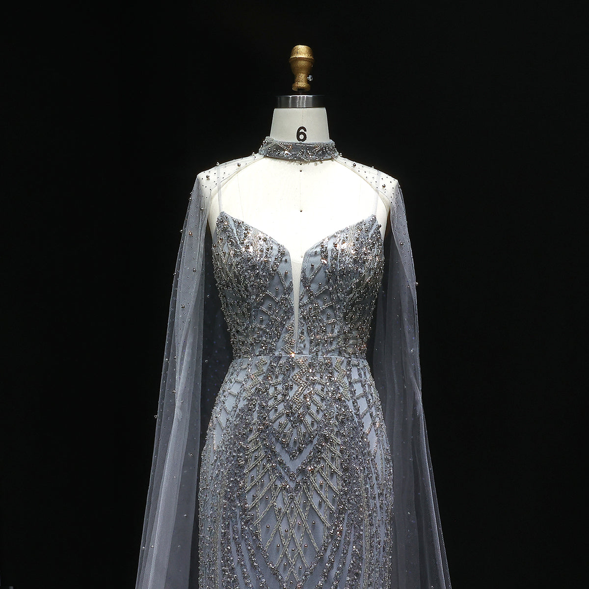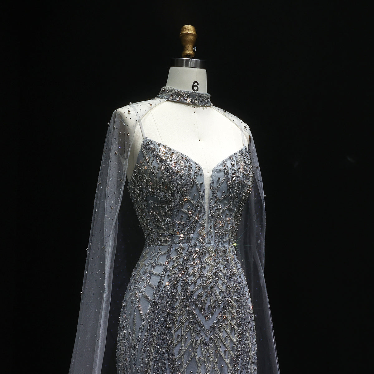 Glamorous Beaded Brown Memaid Evening Gown with Cape SS055