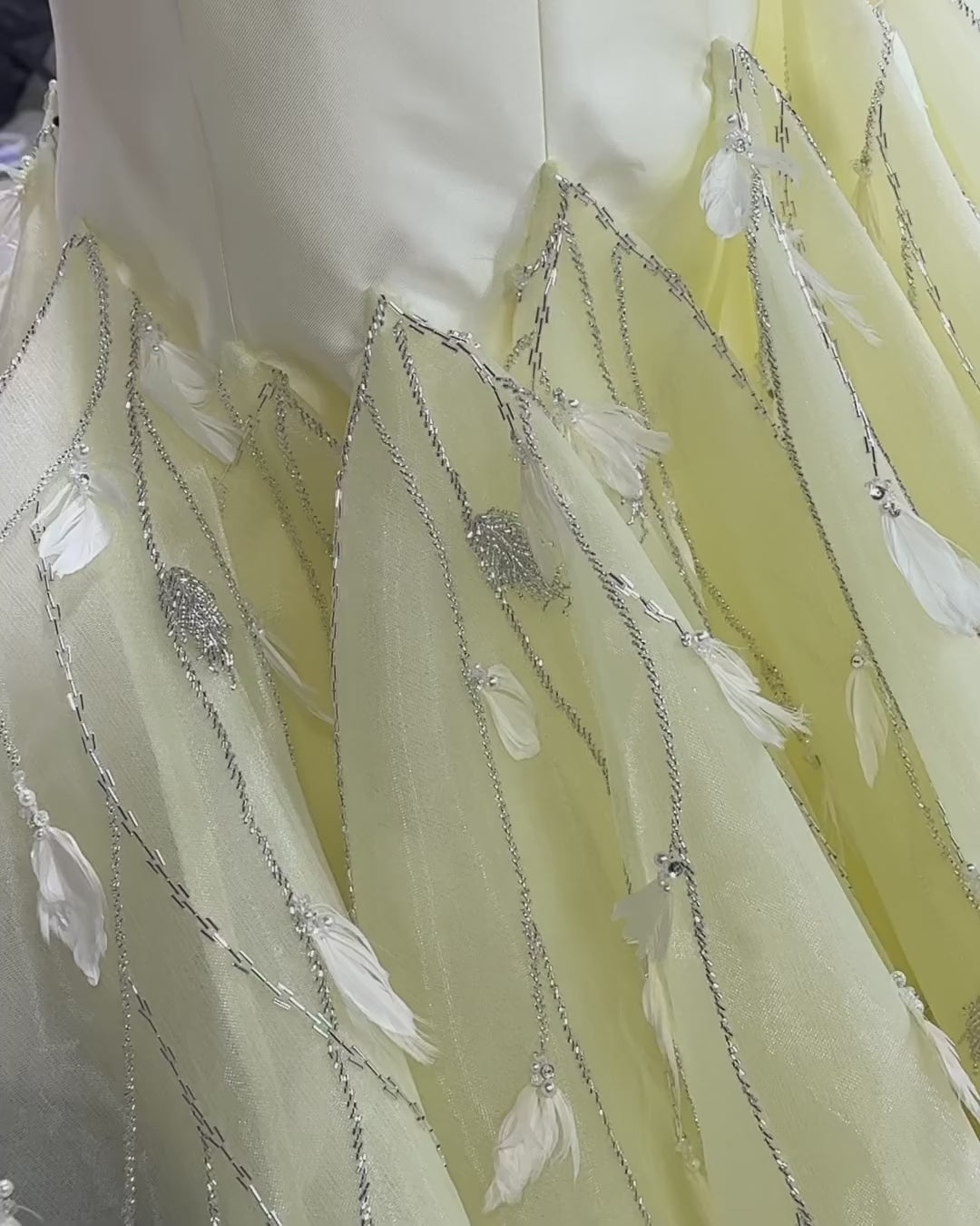 Glamorous Feather Yellow Evening Dress with Gloves SF422