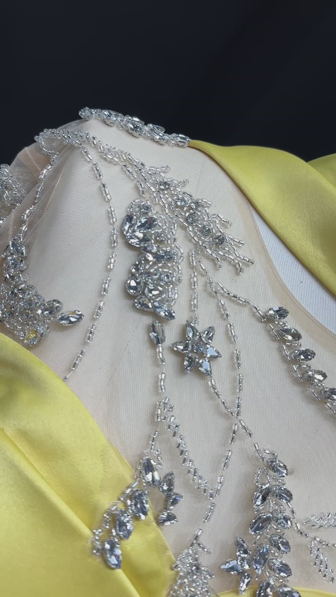Graceful Crystal Yellow Evening Dress with Overskirt SS302