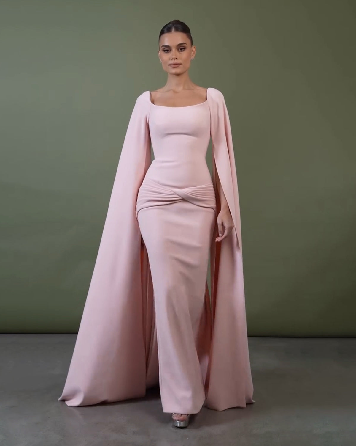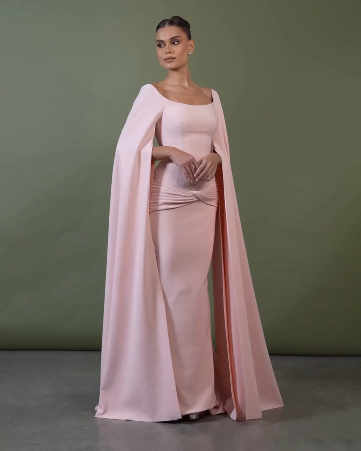 Experience elegance and grace with our stunning Graceful Bataeu Pink Draped Evening Dress. The exquisite cape sleeves add a touch of sophistication, while the draped detailing creates a flattering silhouette. Perfect for any formal occasion, this dress is sure to make you stand out from the crowd.