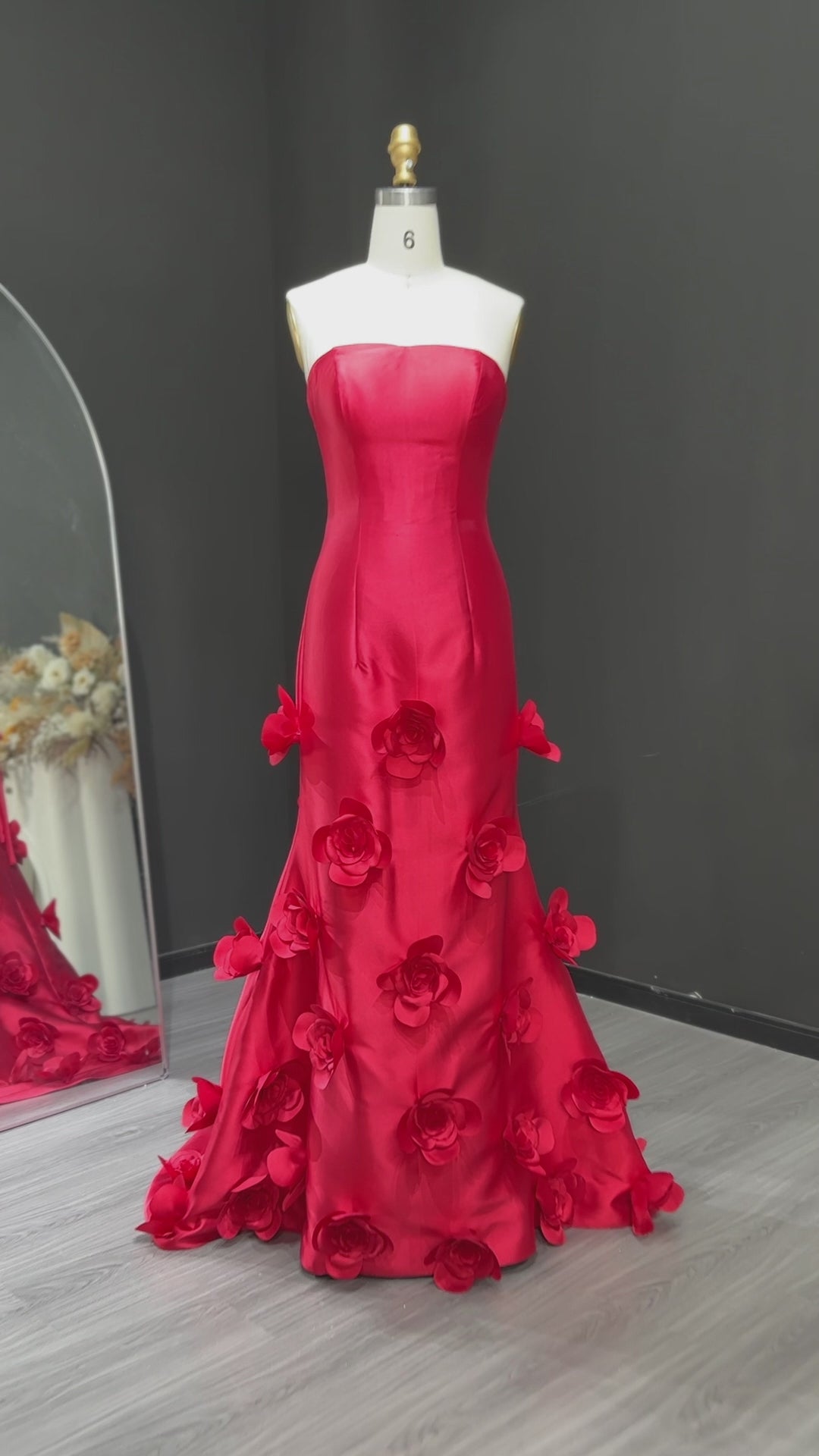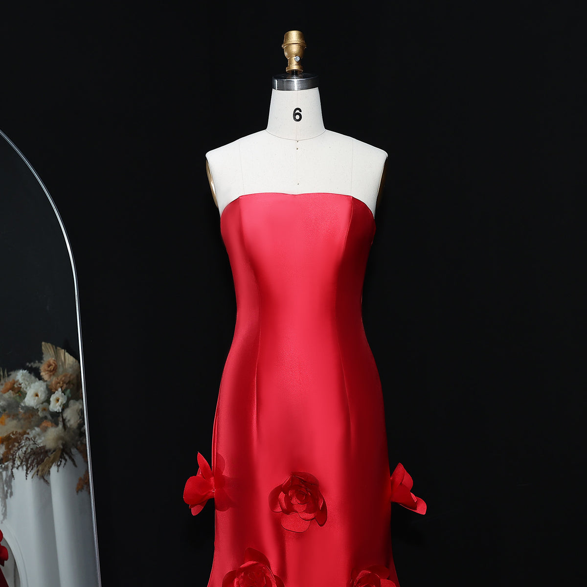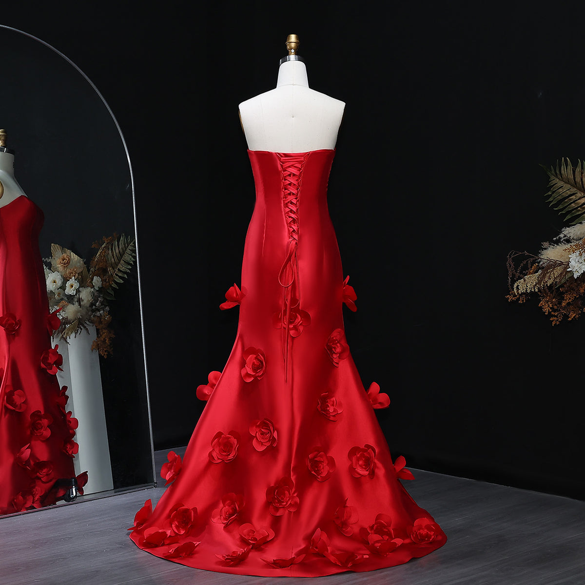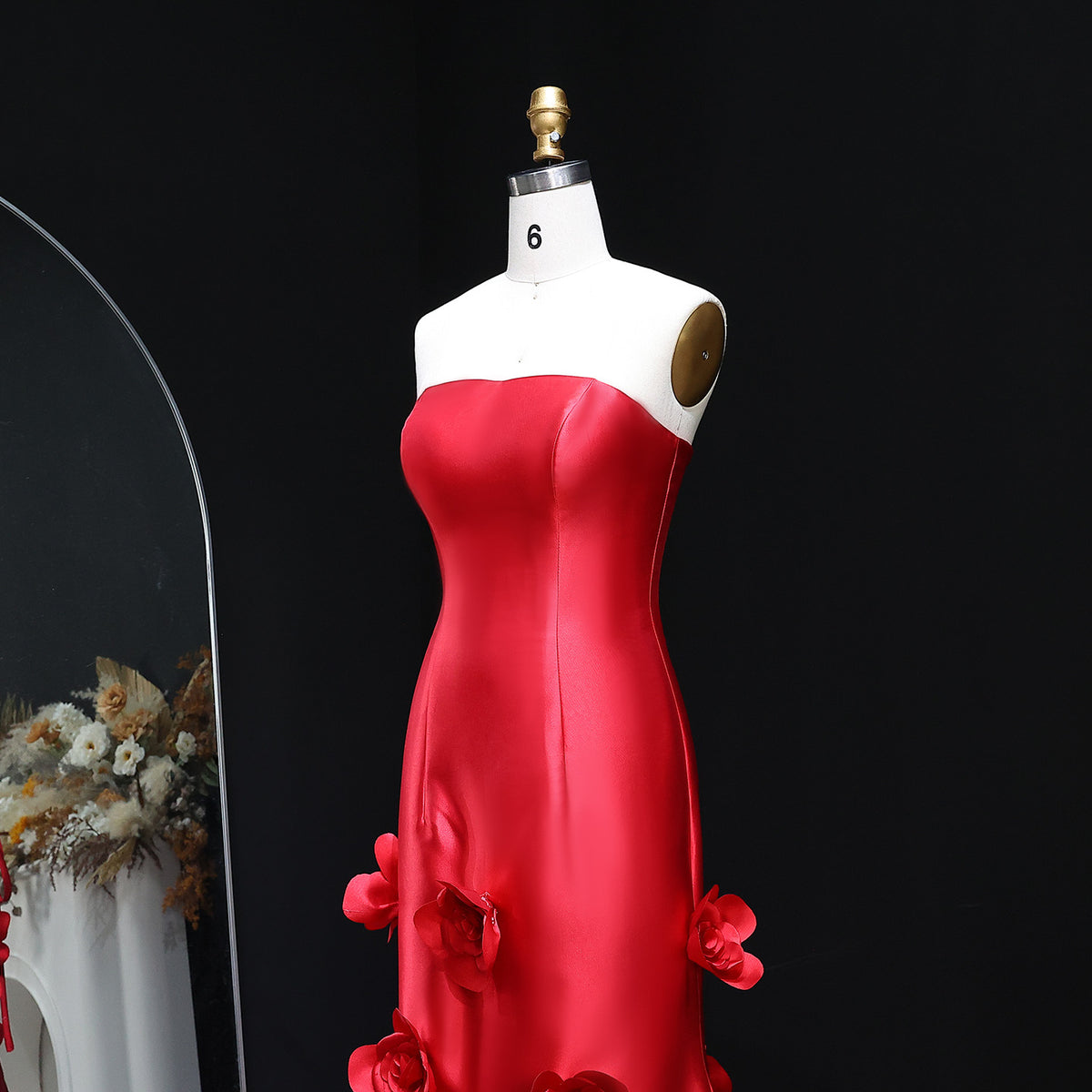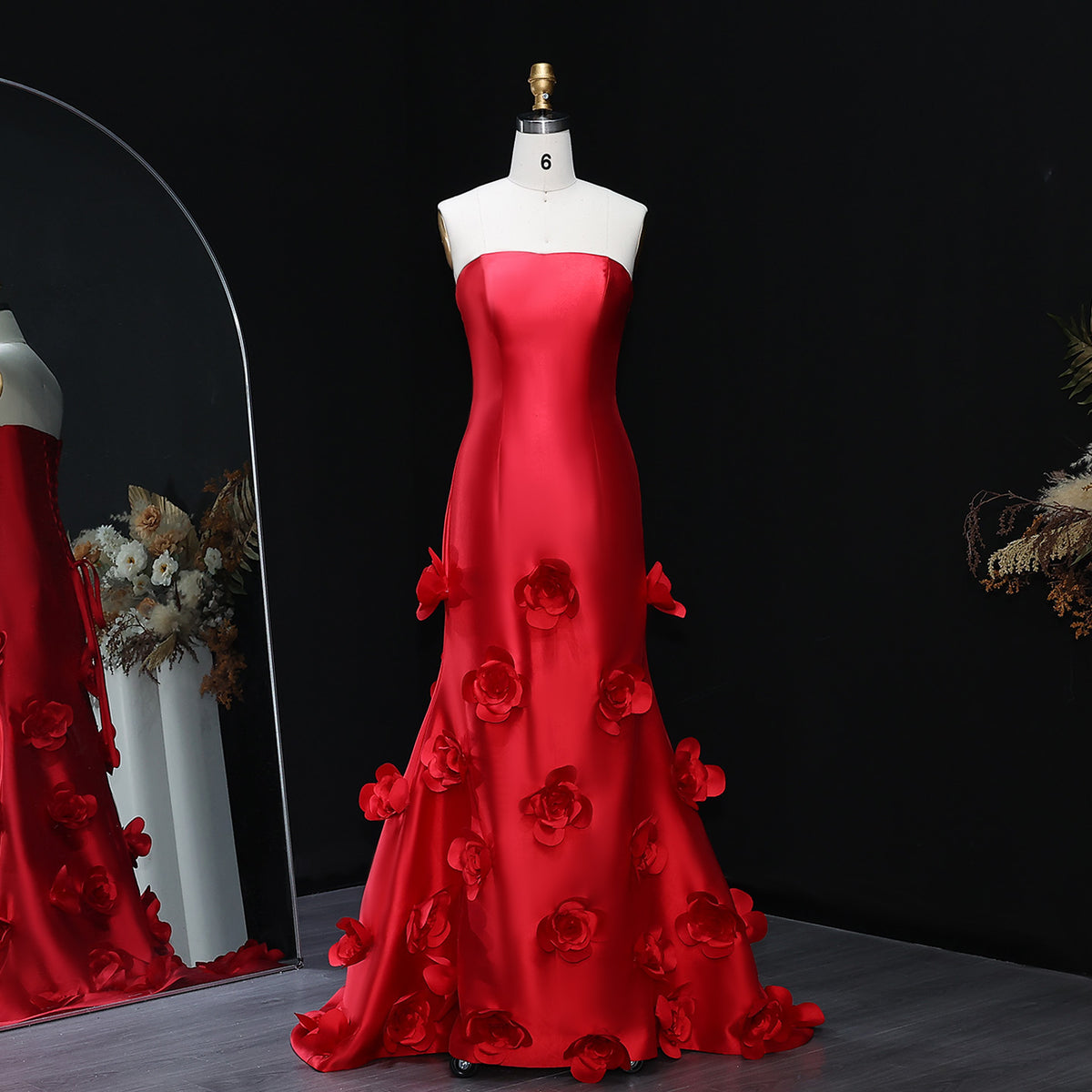 Experience the ultimate in luxury and fashion with our Luxury 3D Floral Red Strapless Mermaid Evening Dress SF457. The intricate 3D floral design adds depth and elegance, while the strapless mermaid silhouette flatters your curves. Make a statement at any formal event with this stunning dress.