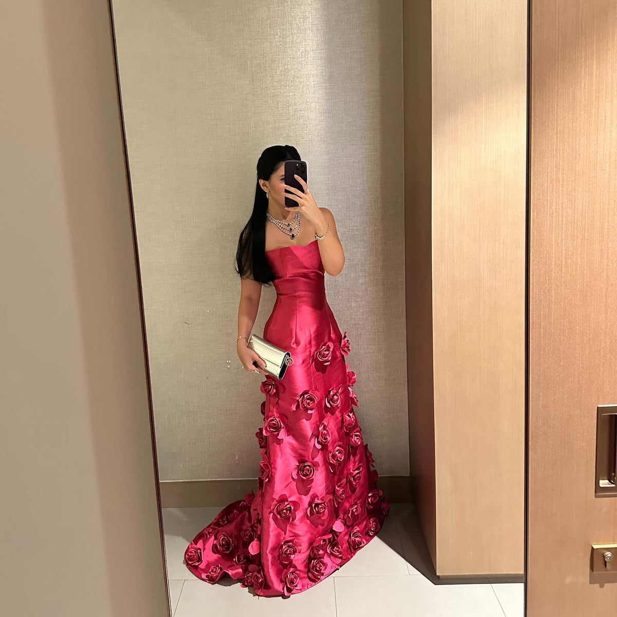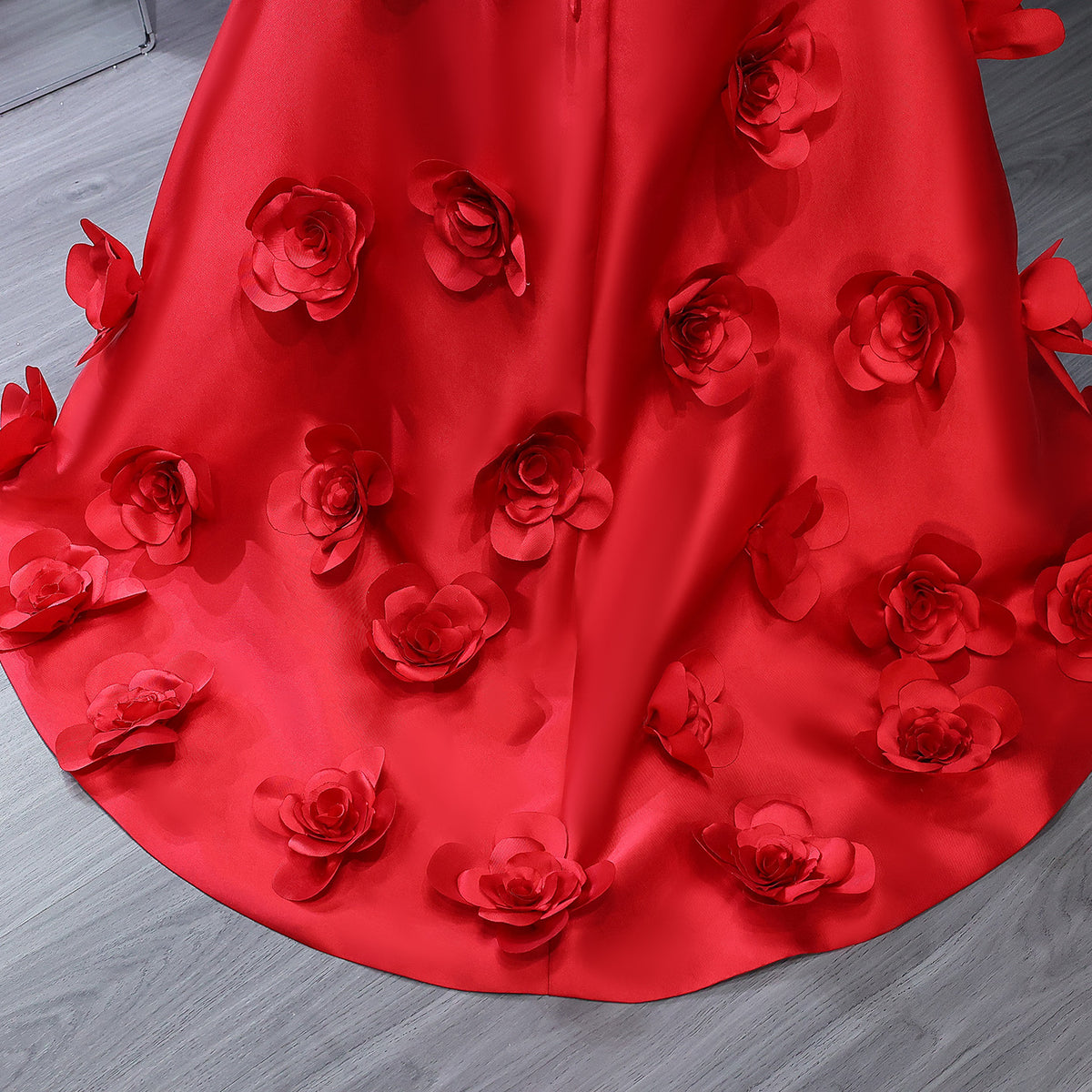 Luxury 3D Floral Red Strapless Mermaid Evening Dress SF457