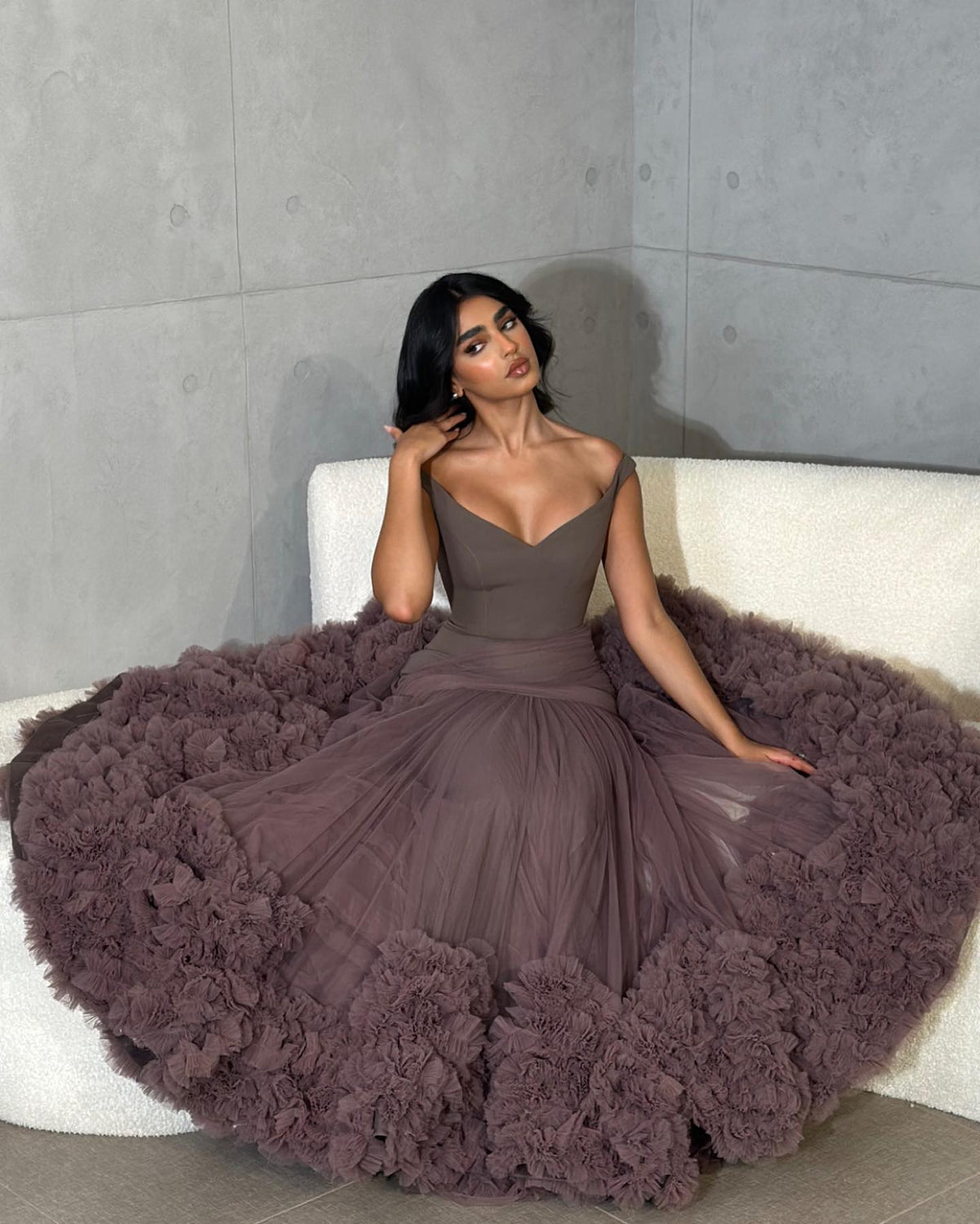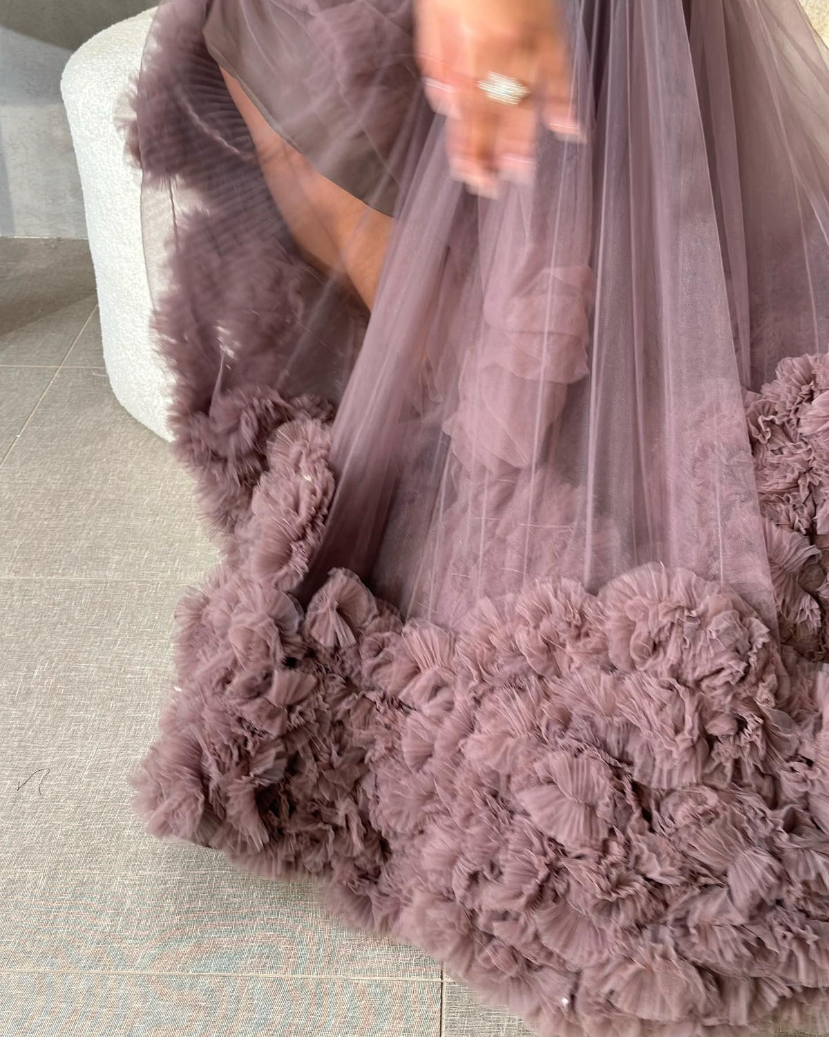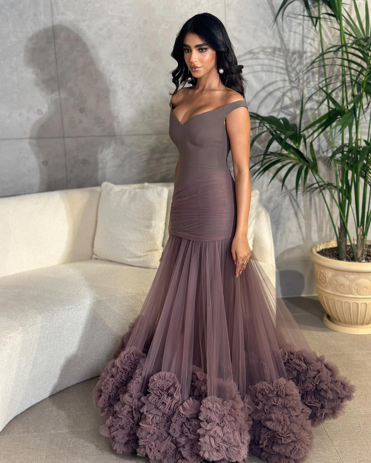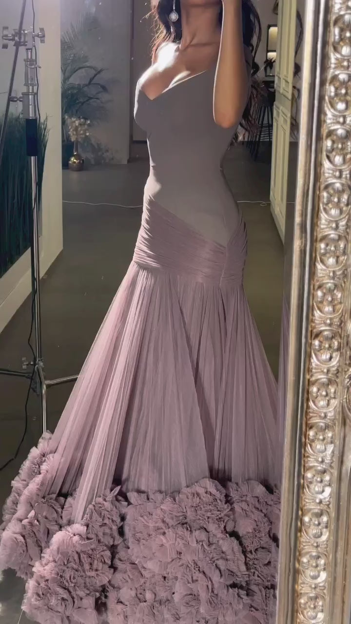 This stunning evening dress features intricate 3D floral straps and ruffles, creating a luxurious and elegant design. The mermaid silhouette flatters the figure, making you feel confident and beautiful. Perfect for special occasions, this dress is sure to make you stand out.