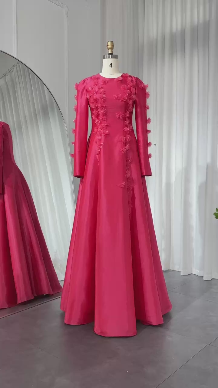 Expertly designed and crafted, the Luxury 3D Flowers Red Long Sleeves A-Line Evening Dress SF054 exudes elegance and sophistication. Featuring intricate 3D flowers and long sleeves, this dress is perfect for any special occasion. The A-Line silhouette flatters all body types and ensures a comfortable fit. Elevate your style with this stunning and luxurious evening dress.