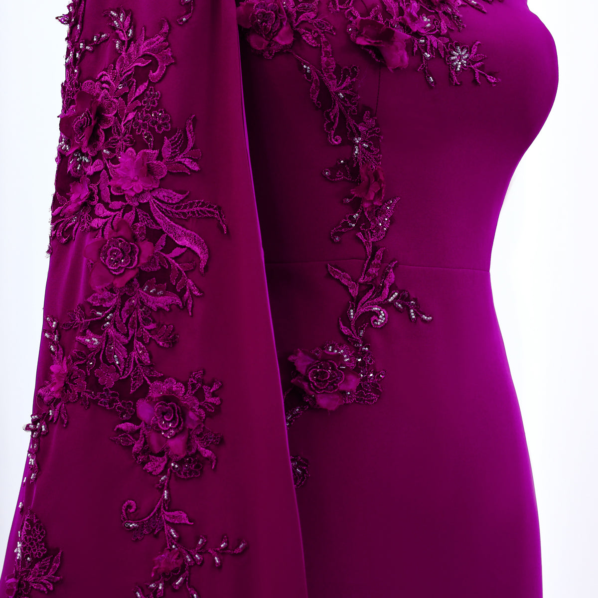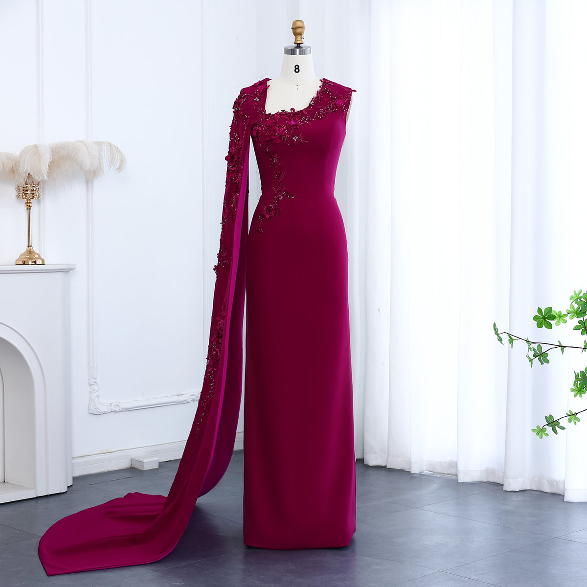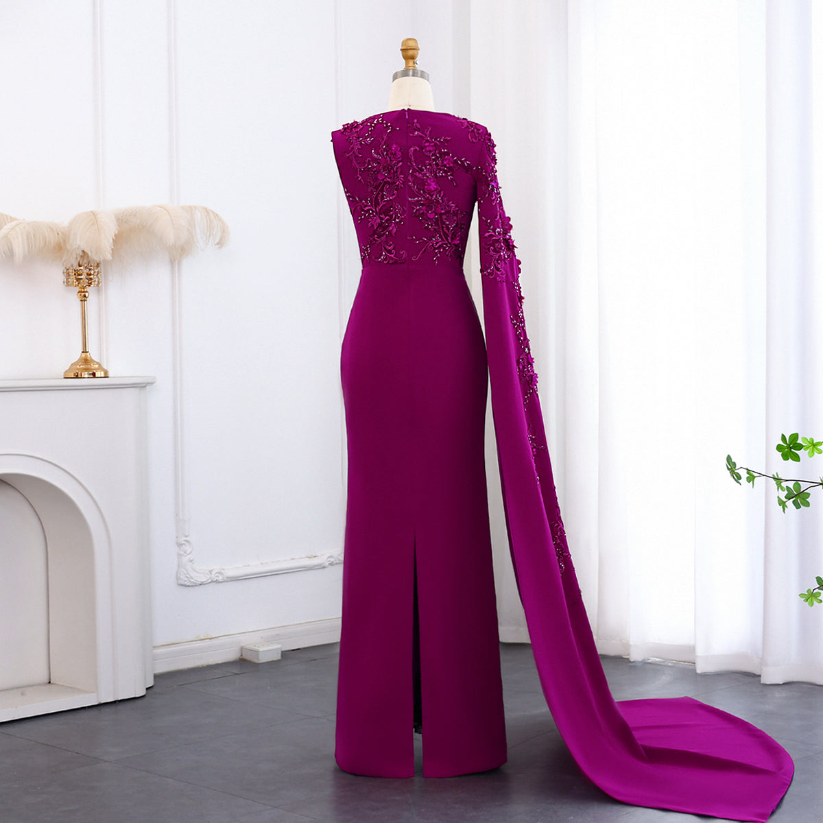 Luxury Appliques Fuchsia Evening Dress with Cape Sleeve SF105
