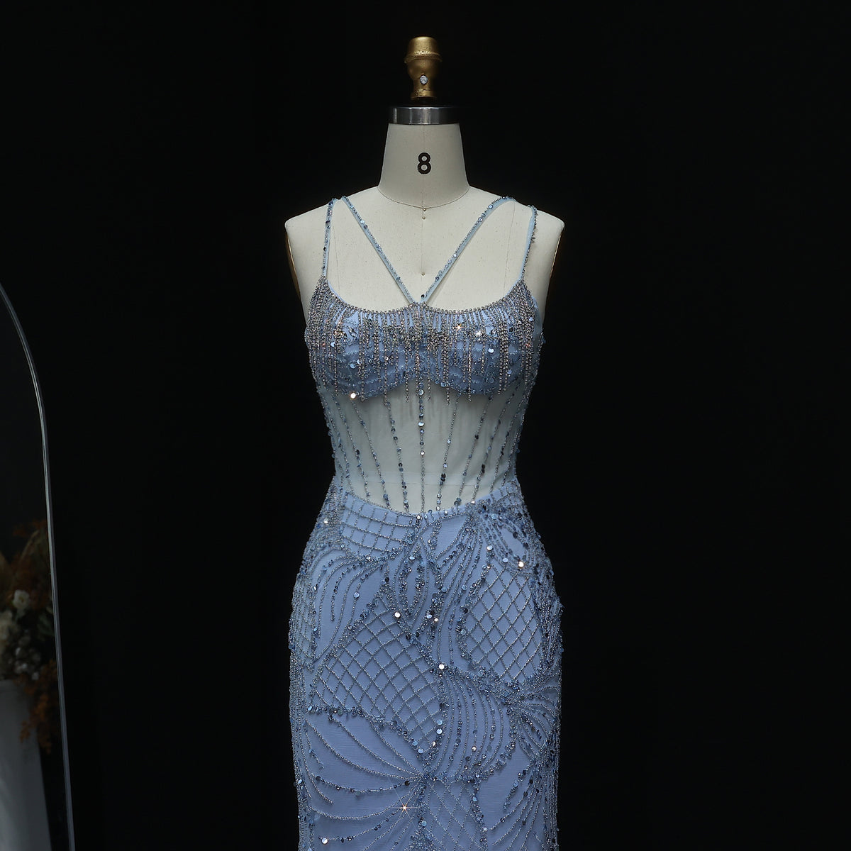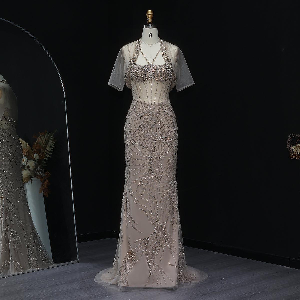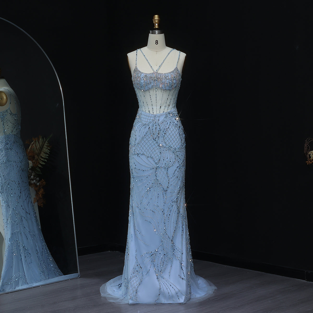 Luxury Beaded Light Blue Evening Dress with Jacket SS192
