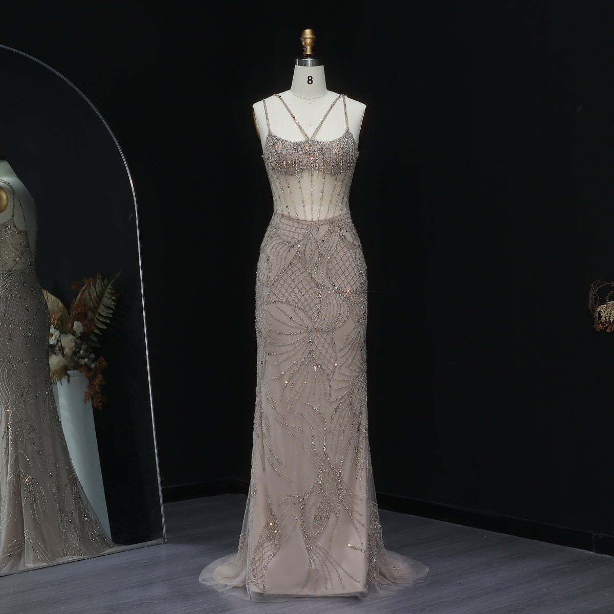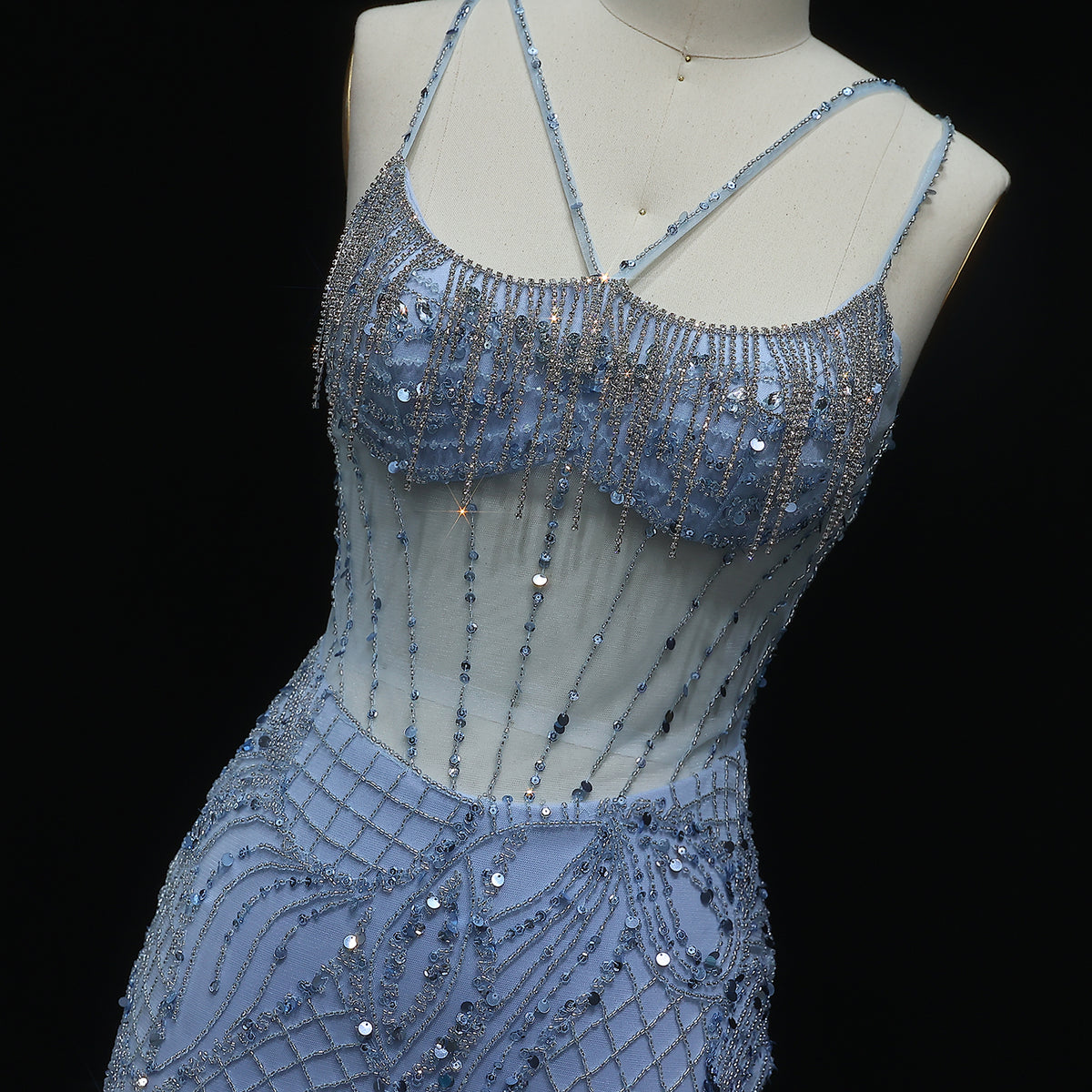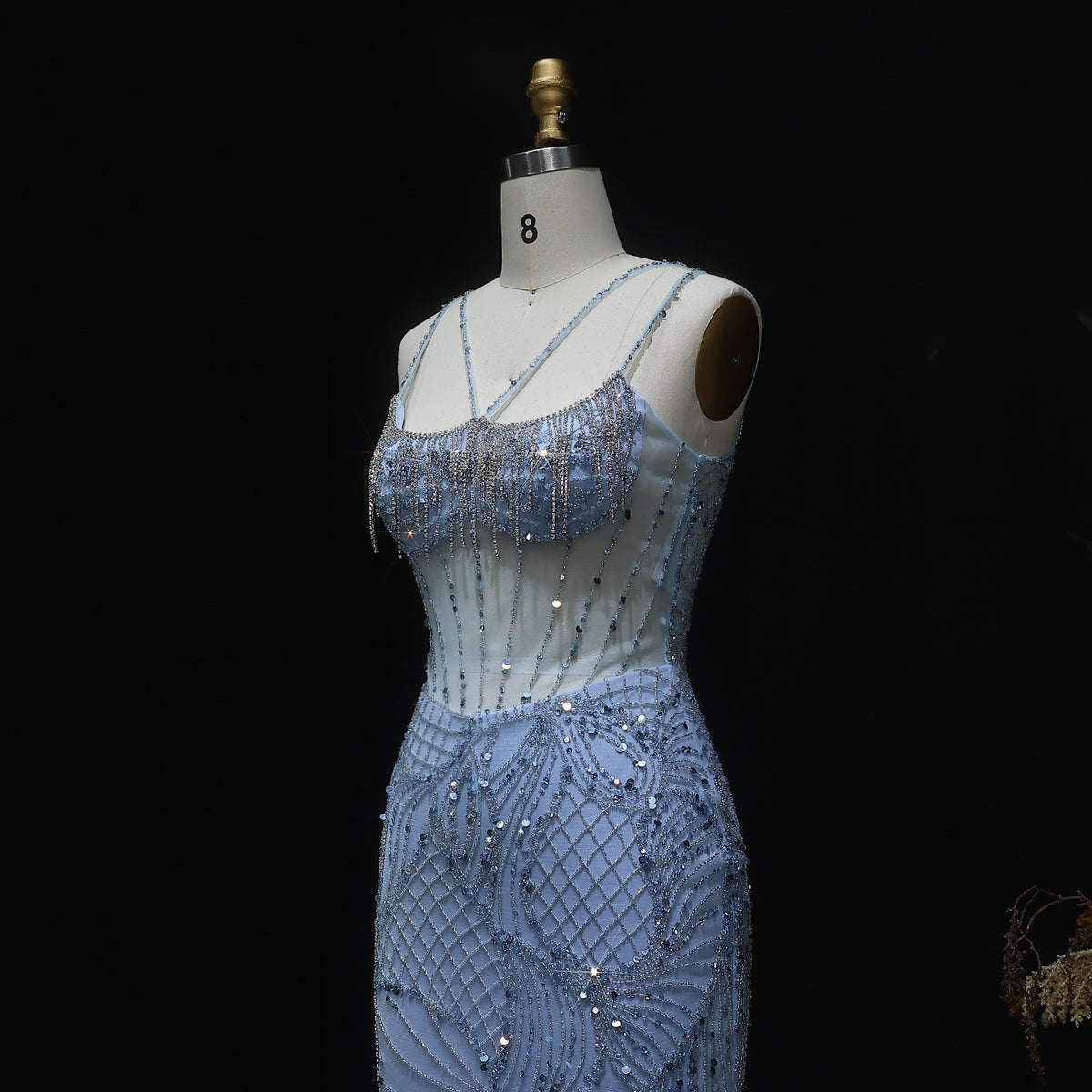 Luxury Beaded Light Blue Evening Dress with Jacket SS192