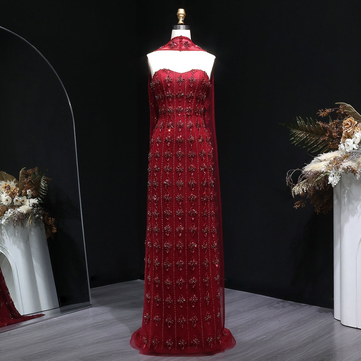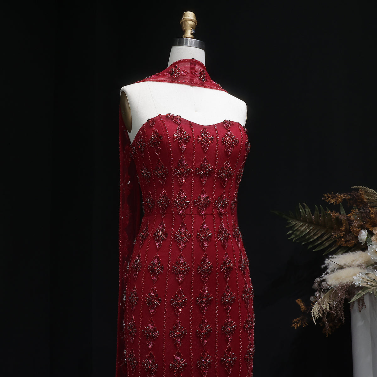 Luxury Beaded Nude Strapless Evening Dress with Scarf SS229