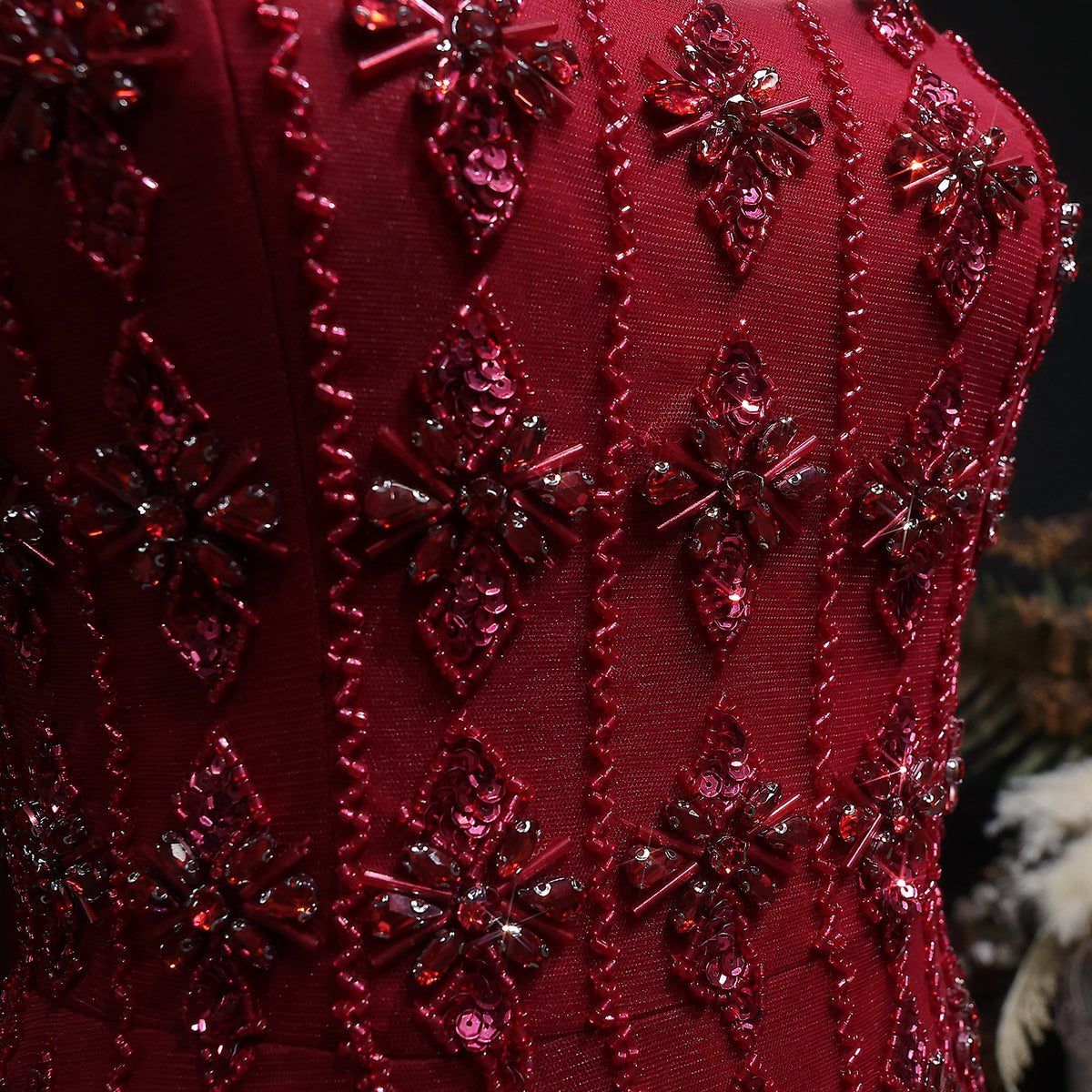 Indulge in luxury with our elegant Beaded Nude Strapless Evening Dress with Scarf SS229. The intricate beadwork adds a touch of glamour to this stunning dress. The included scarf can be draped over your shoulders for a chic, sophisticated look. Elevate your evening attire with this must-have garment.