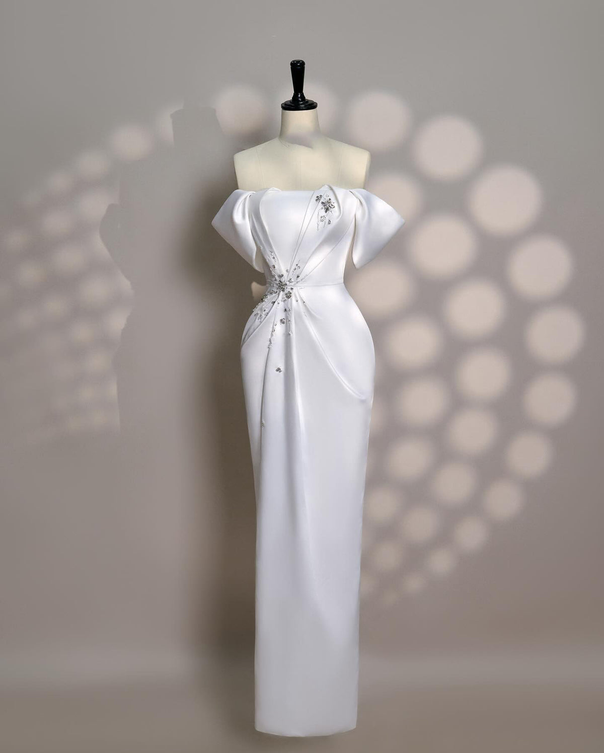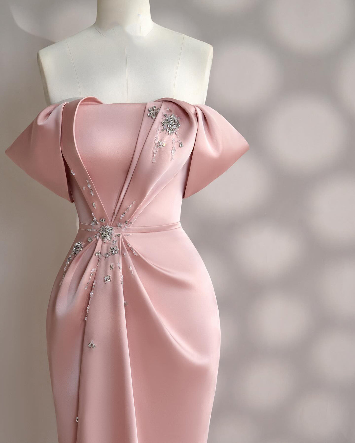 As an expert in the fashion industry, I present the luxurious and elegant Crystal Pink Off Shoulder Evening Dress SF451. Made with high-quality materials and detailed with sparkling crystals, this dress exudes sophistication and glamour. Enhance your evening look and feel confident with this exquisite piece.
