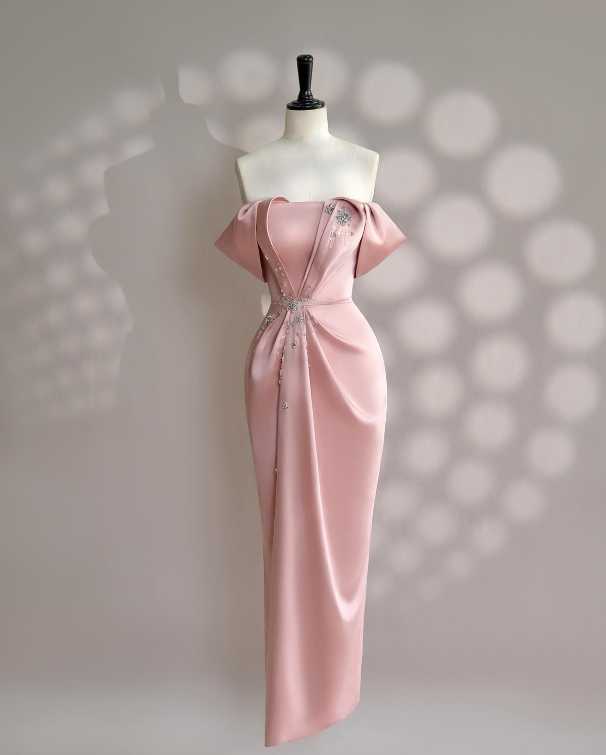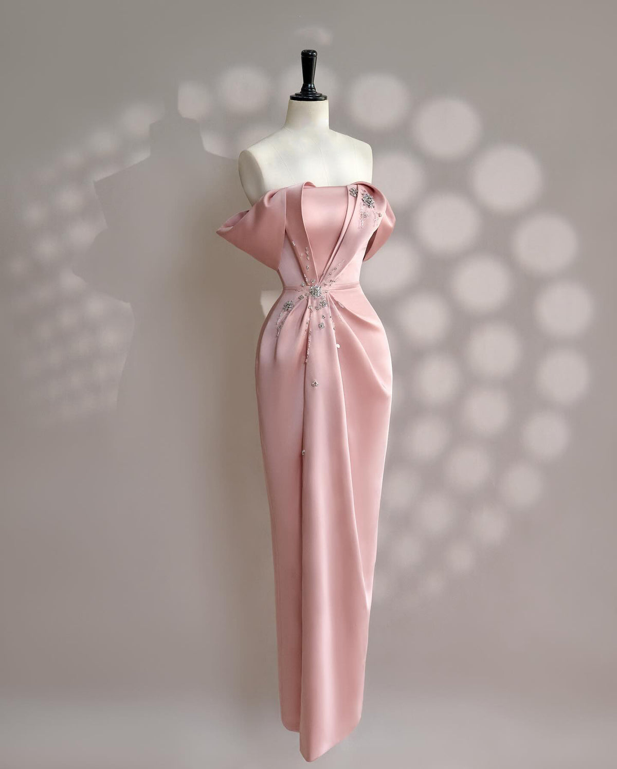 Luxury Crystal Pink Off Shoulder Evening Dress SF451